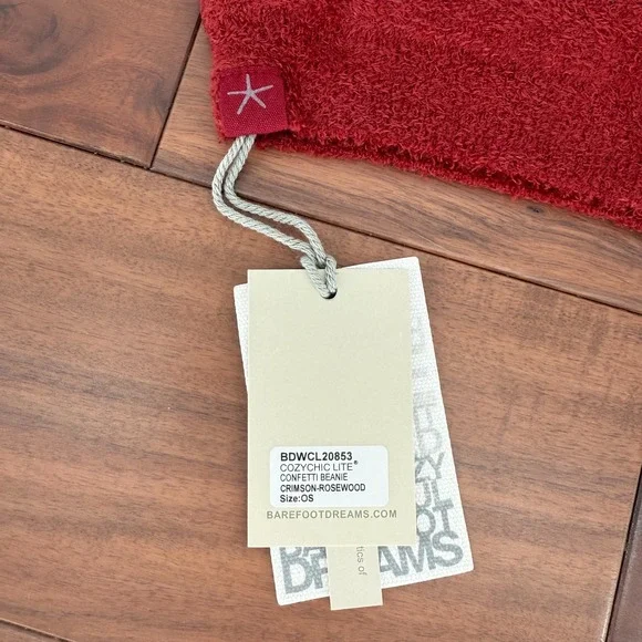 Barefoot Dreams CozyChic Lite Confetti Beanie Hat Women OS Crimson Rosewood Knit