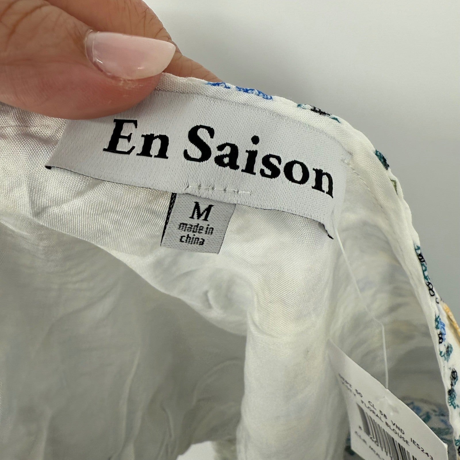 Chic and stylish floral blouse by En Saison, perfect for adding a touch of spring to your wardrobe. This eye-catching one-shoulder crop top features a beautiful floral print in yellow, blue, and green hues against a crisp white background. The unique one-shoulder design adds a modern, flirty touch, while the lightweight fabric ensures comfort and breathability. Its cropped length makes it ideal for pairing with high-waisted jeans, skirts, or shorts. Great for brunch with friends, garden parties, or a casual summer date.