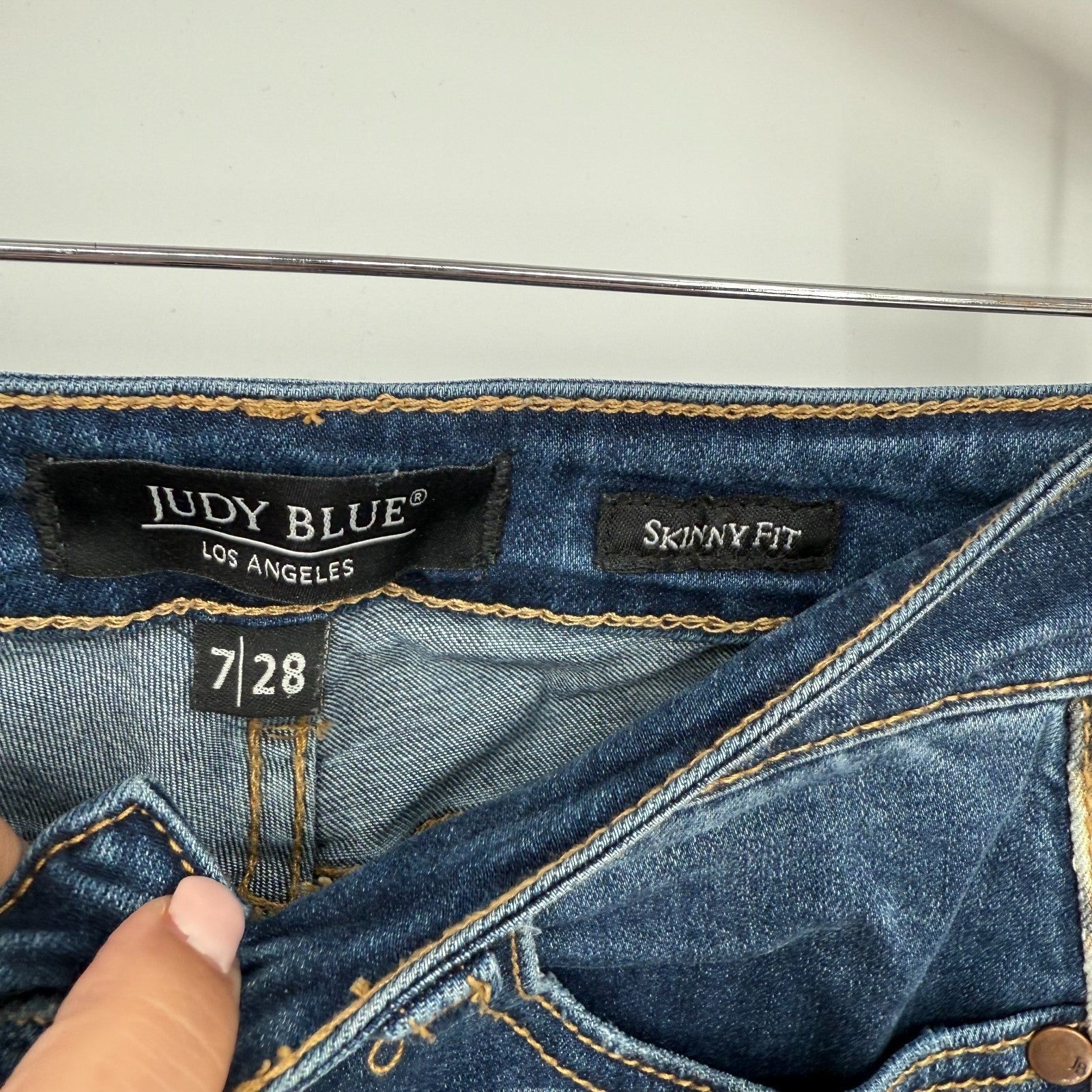 Judy Blue Jeans Womens 7/28 Blue Denim Logo Skinny Leg Leopard Print Side Stripe