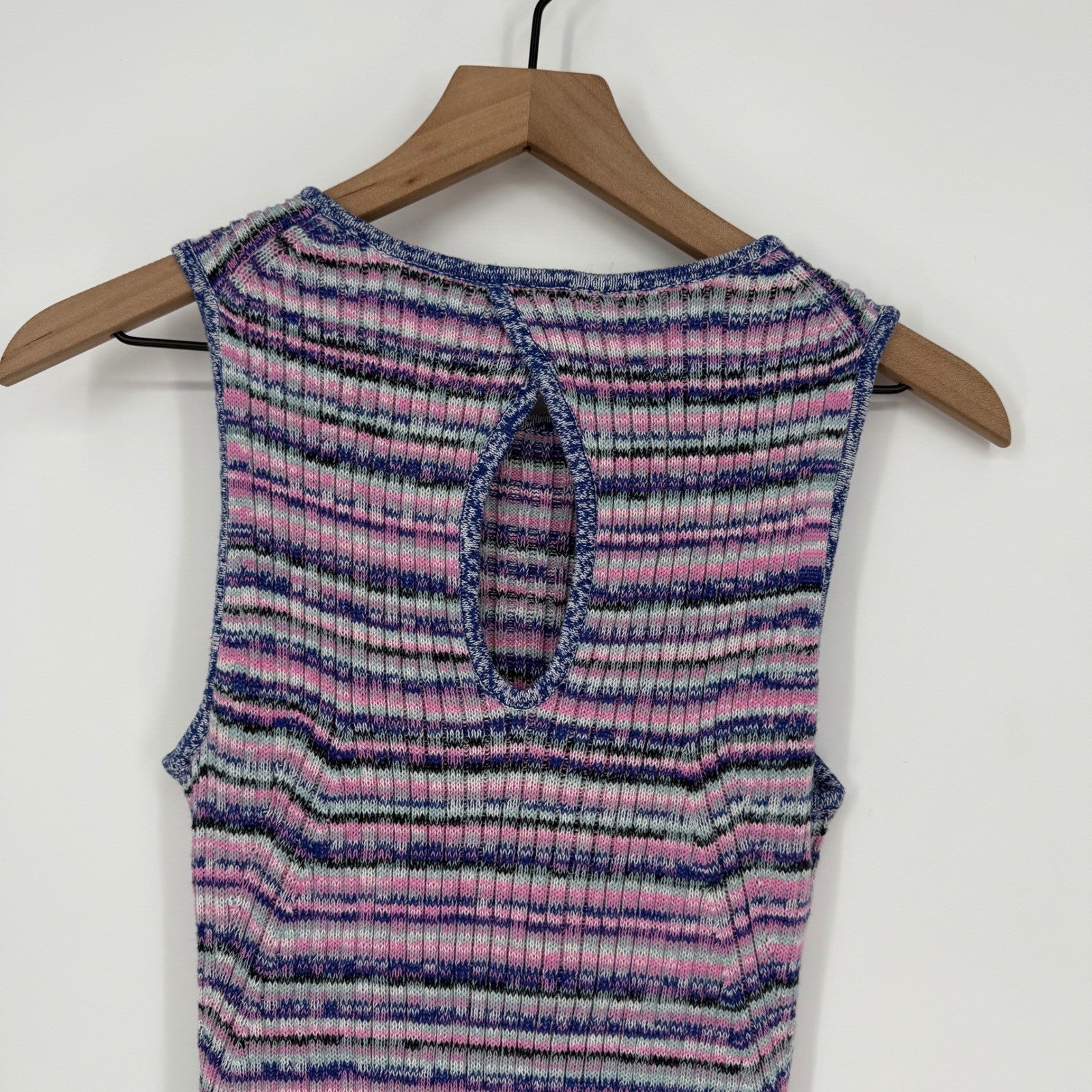 GAP Striped Ribbed Knit Sleeveless Midi Dress Keyhole Back XS