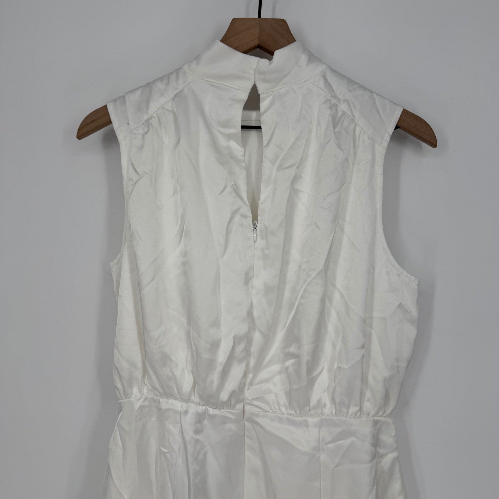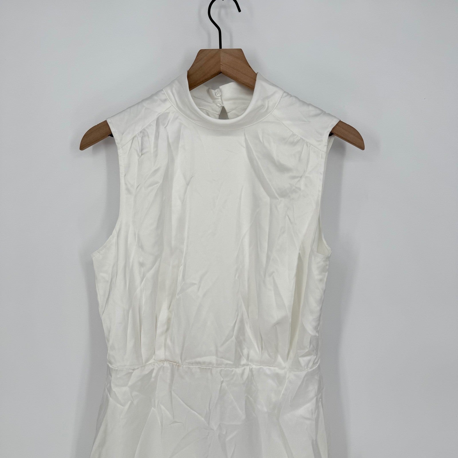 Lulus Classic Elegance White Satin Sleeveless Mock Neck Mini Dress Size L