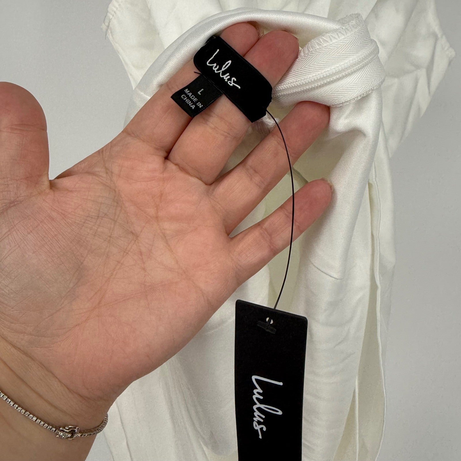 Keywords: Lulus, white dress, mini dress, sleeveless dress, mock neck dress, party dress, cocktail dress, womens dress, size large, L, dress, new with tags, NWT