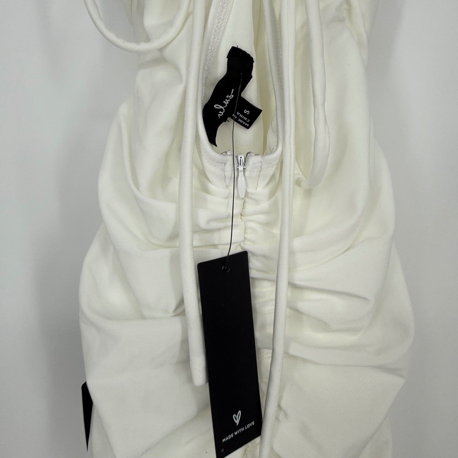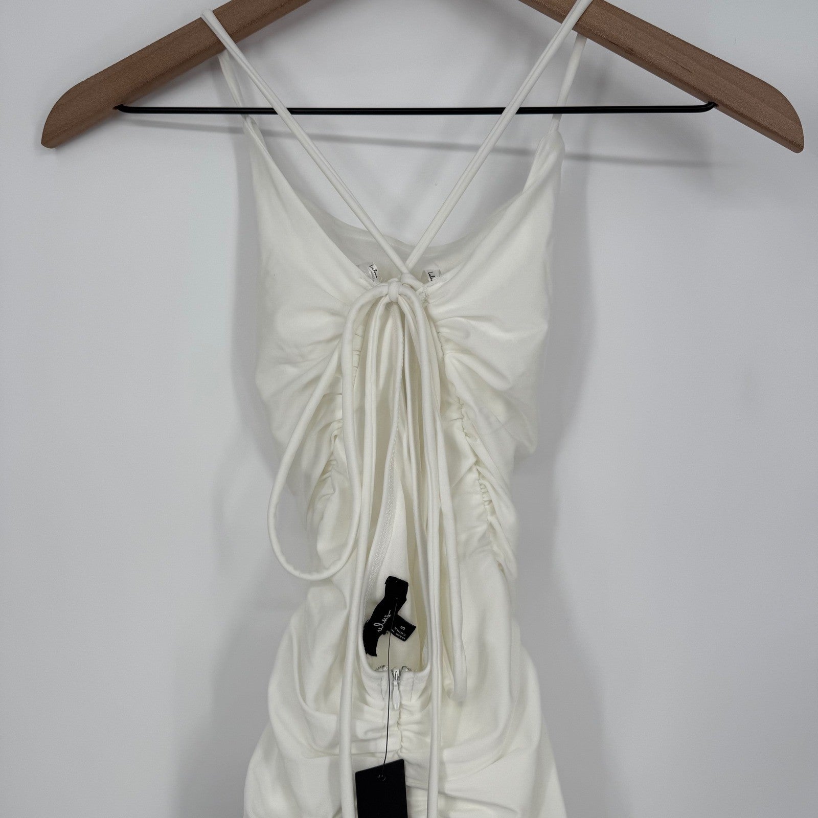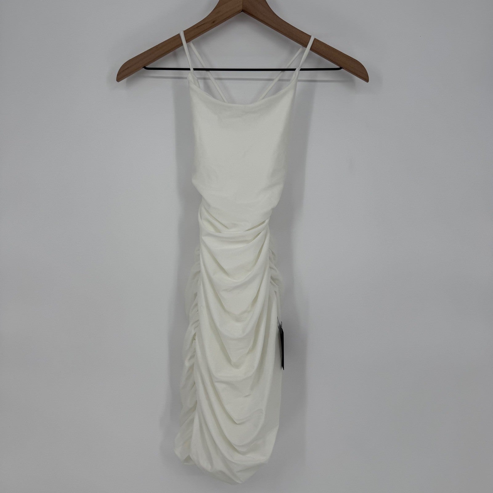 Keywords: Lulus, white dress, mini dress, bodycon dress, ruched dress, sleeveless dress, party dress, cocktail dress, adjustable straps, spaghetti strap dress, size S, womens dress, dress, new with tags, evening dress