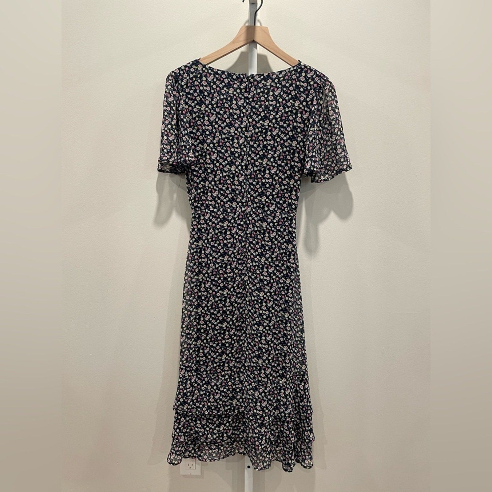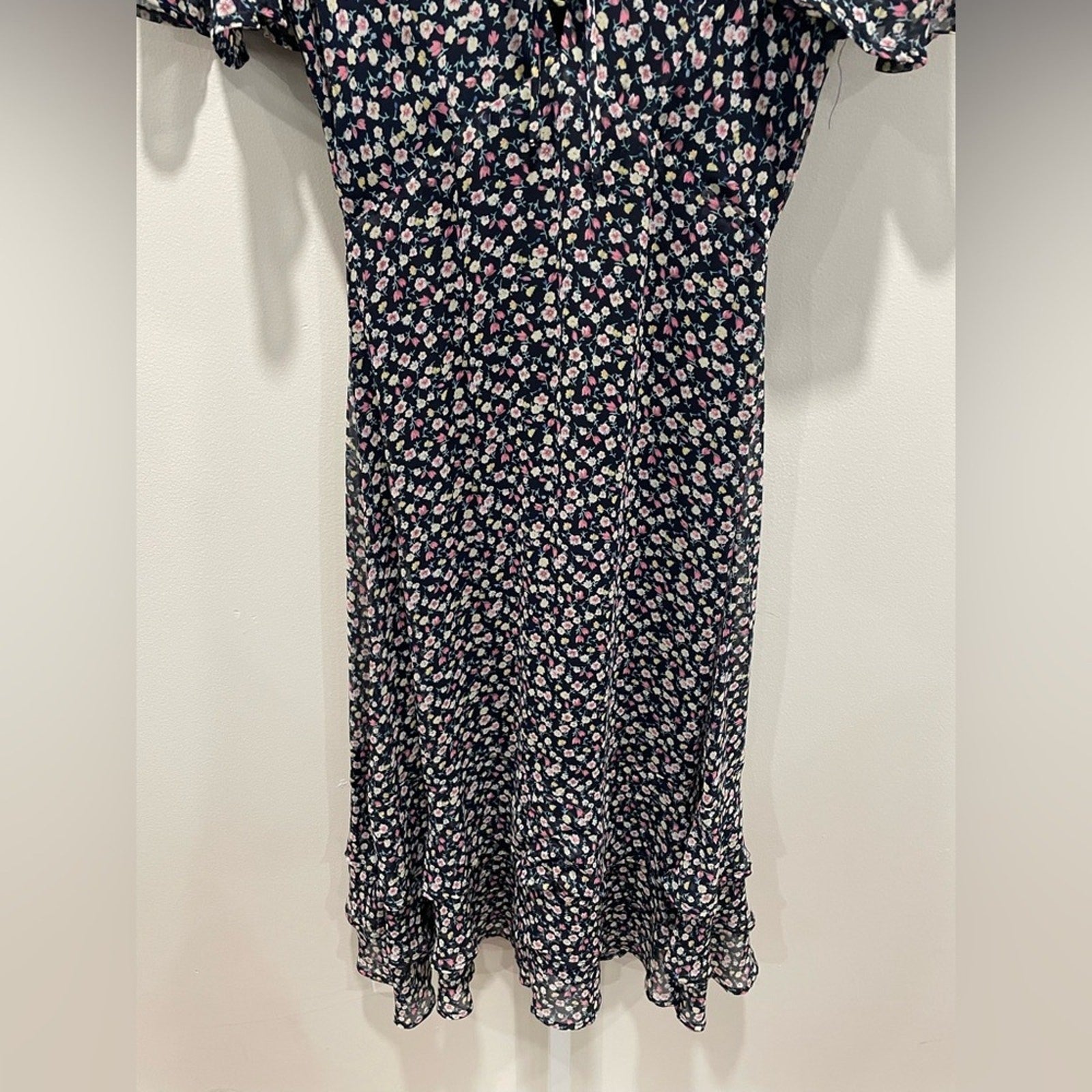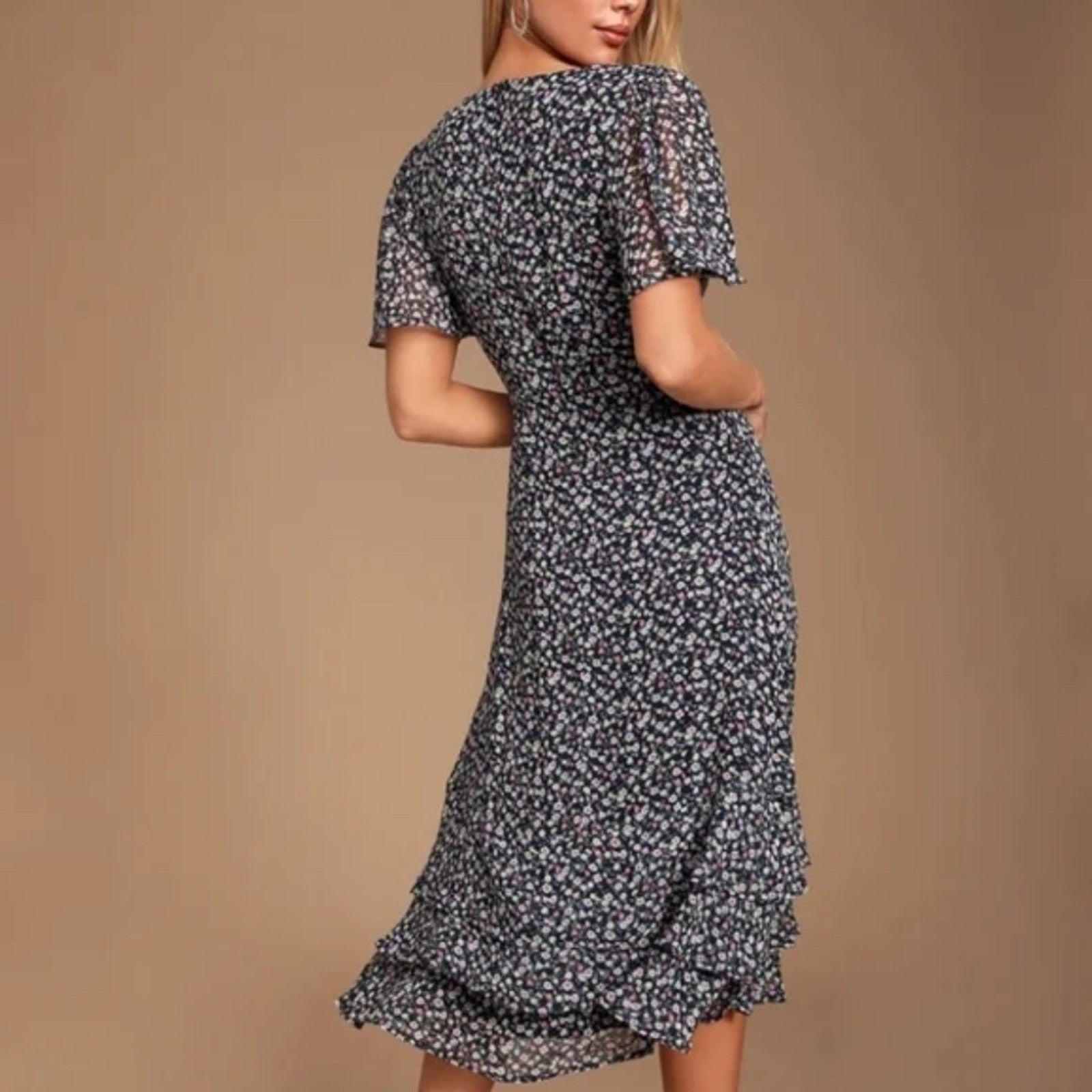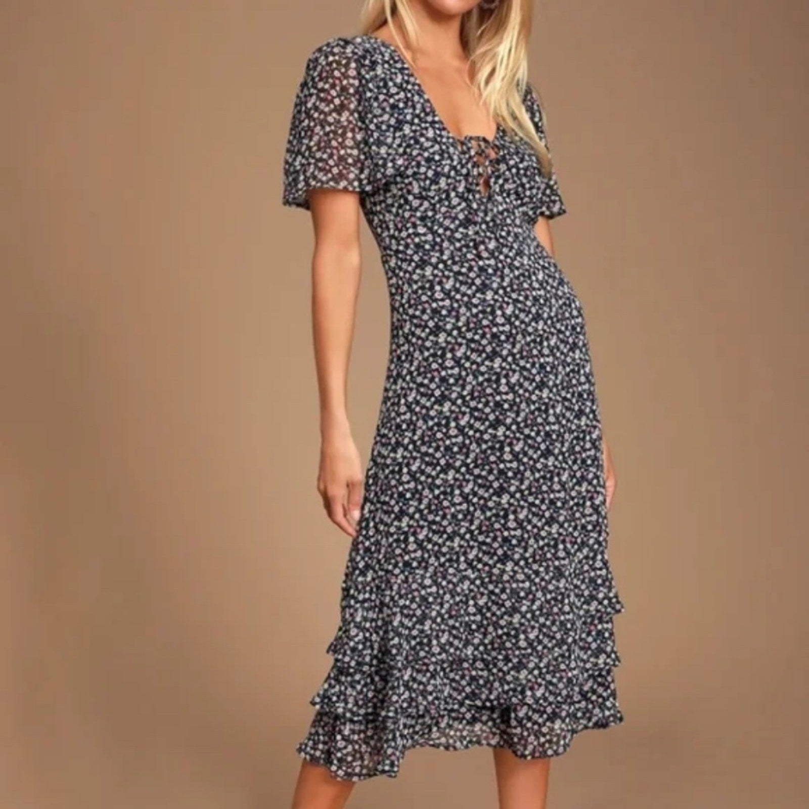 Lulus Renee Navy Blue Floral Print Ruffled Lace-Up Midi Dress Size XS