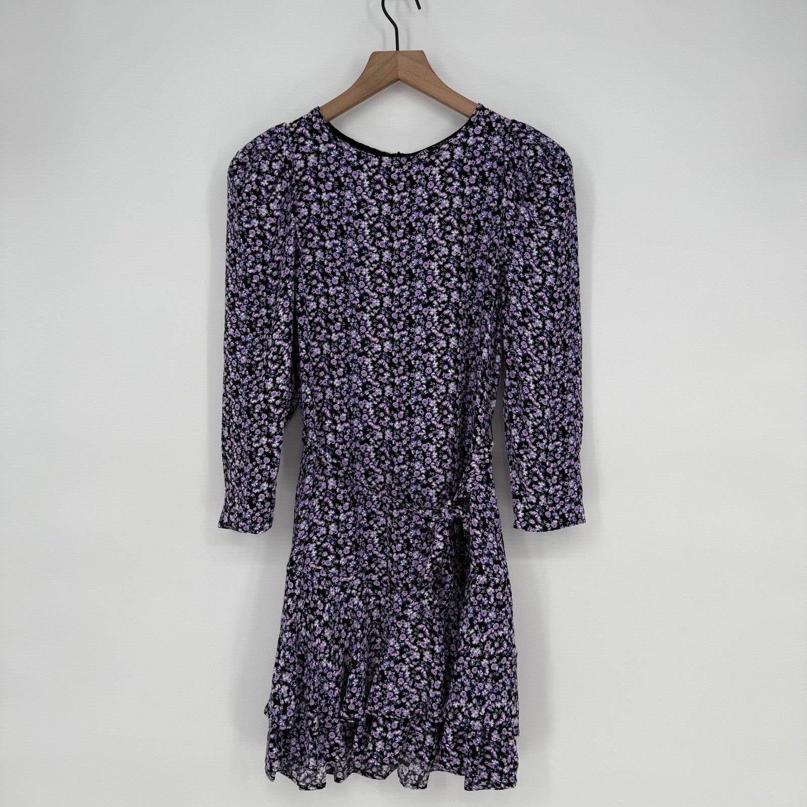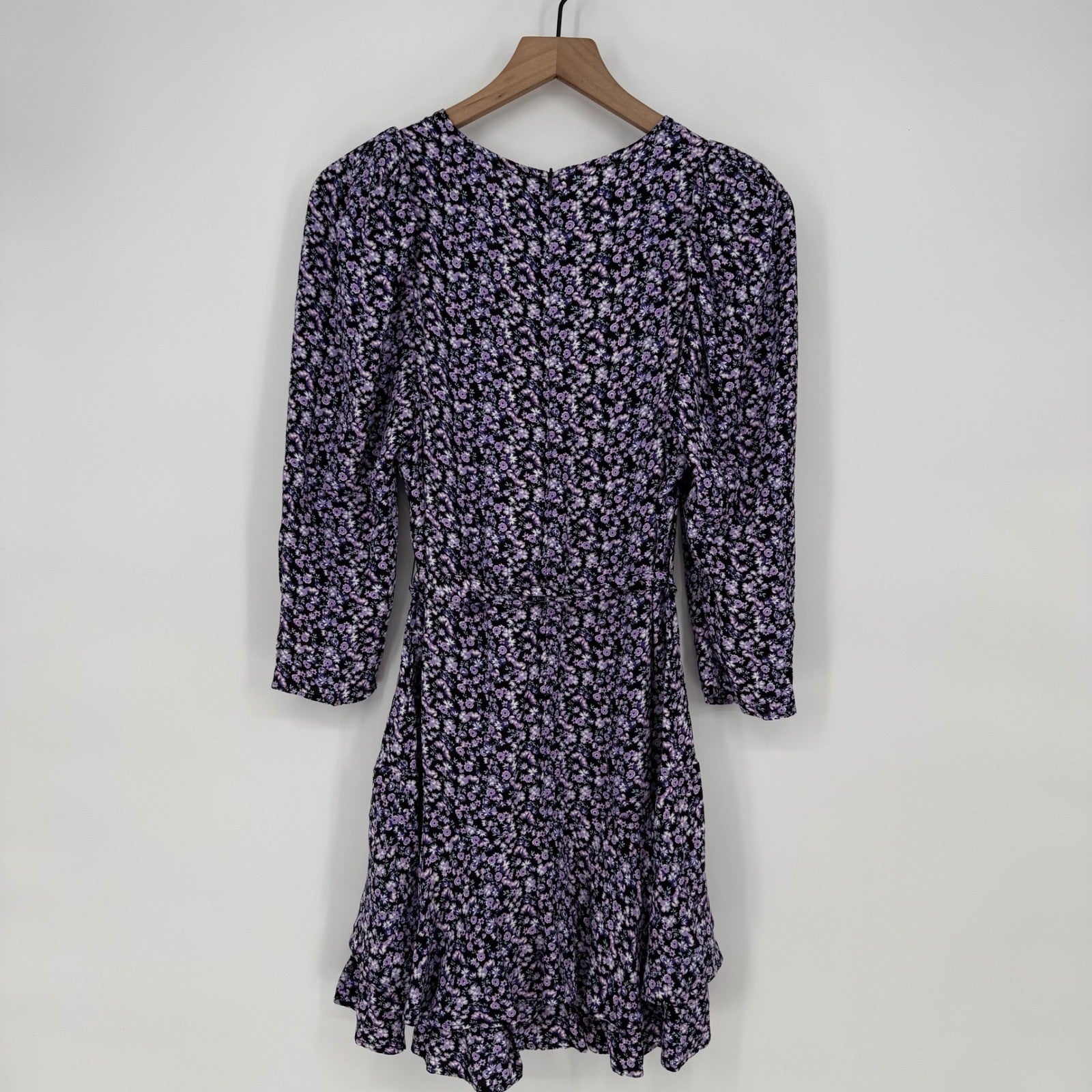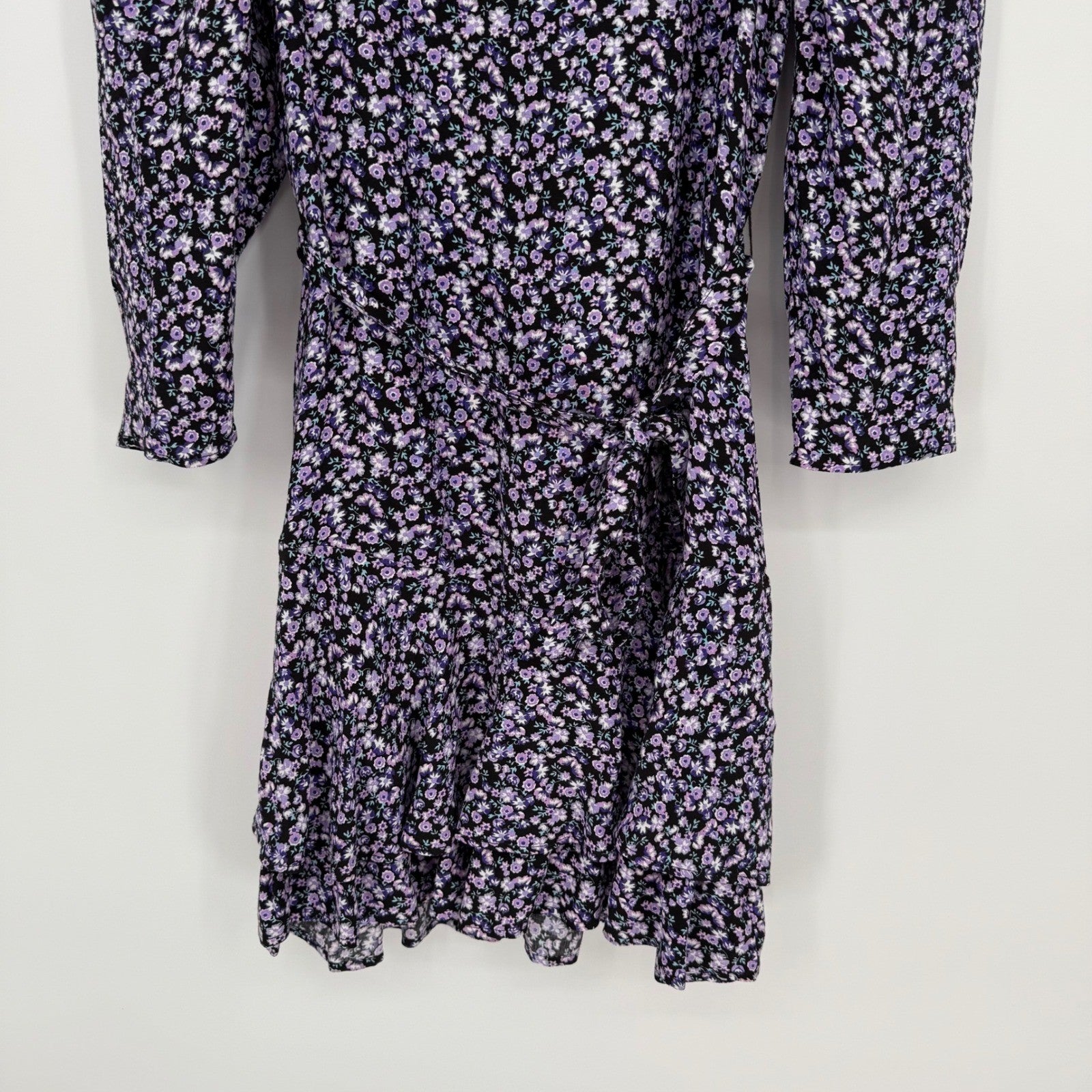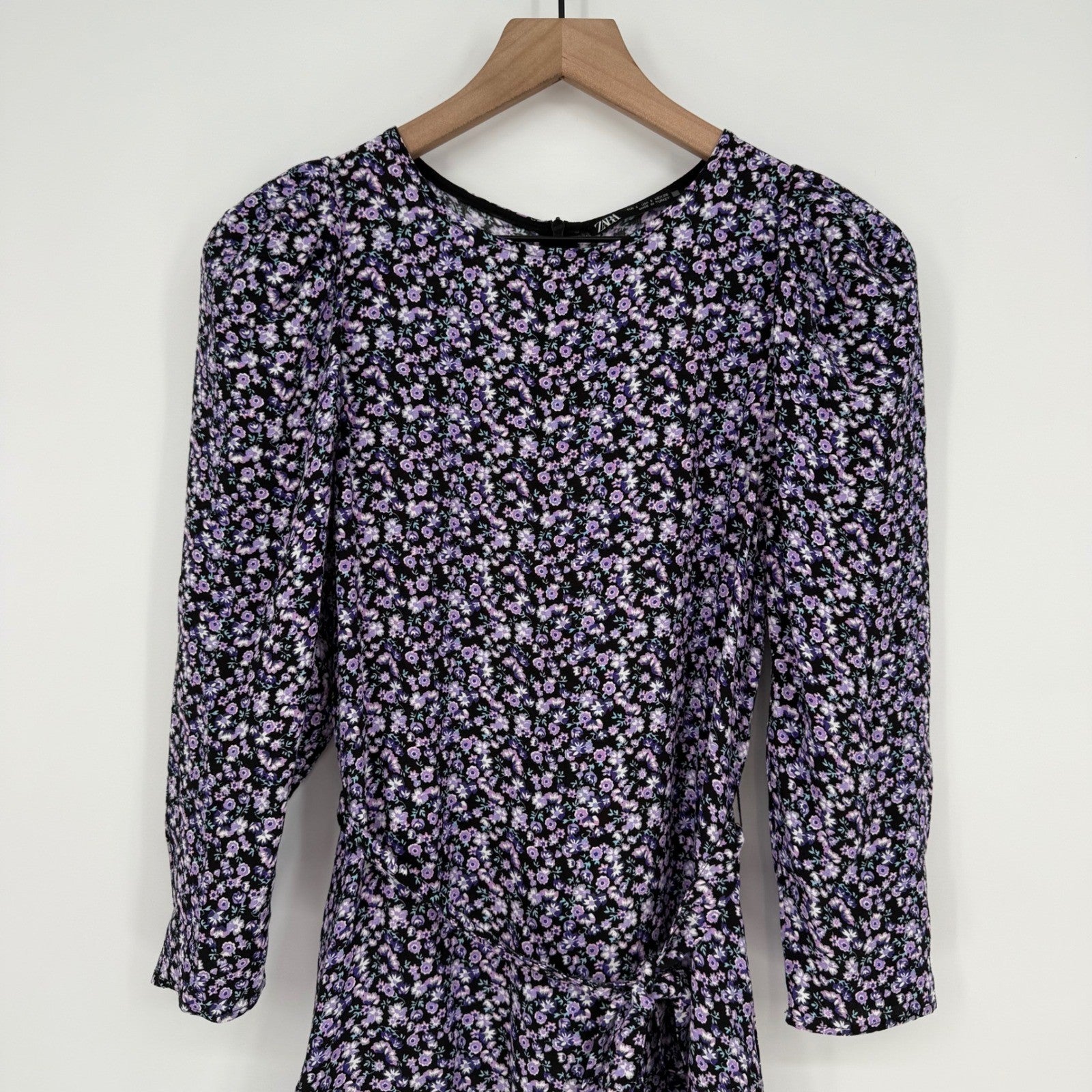 ZARA Floral Print Long Sleeve Wrap Dress Purple Black Size S
