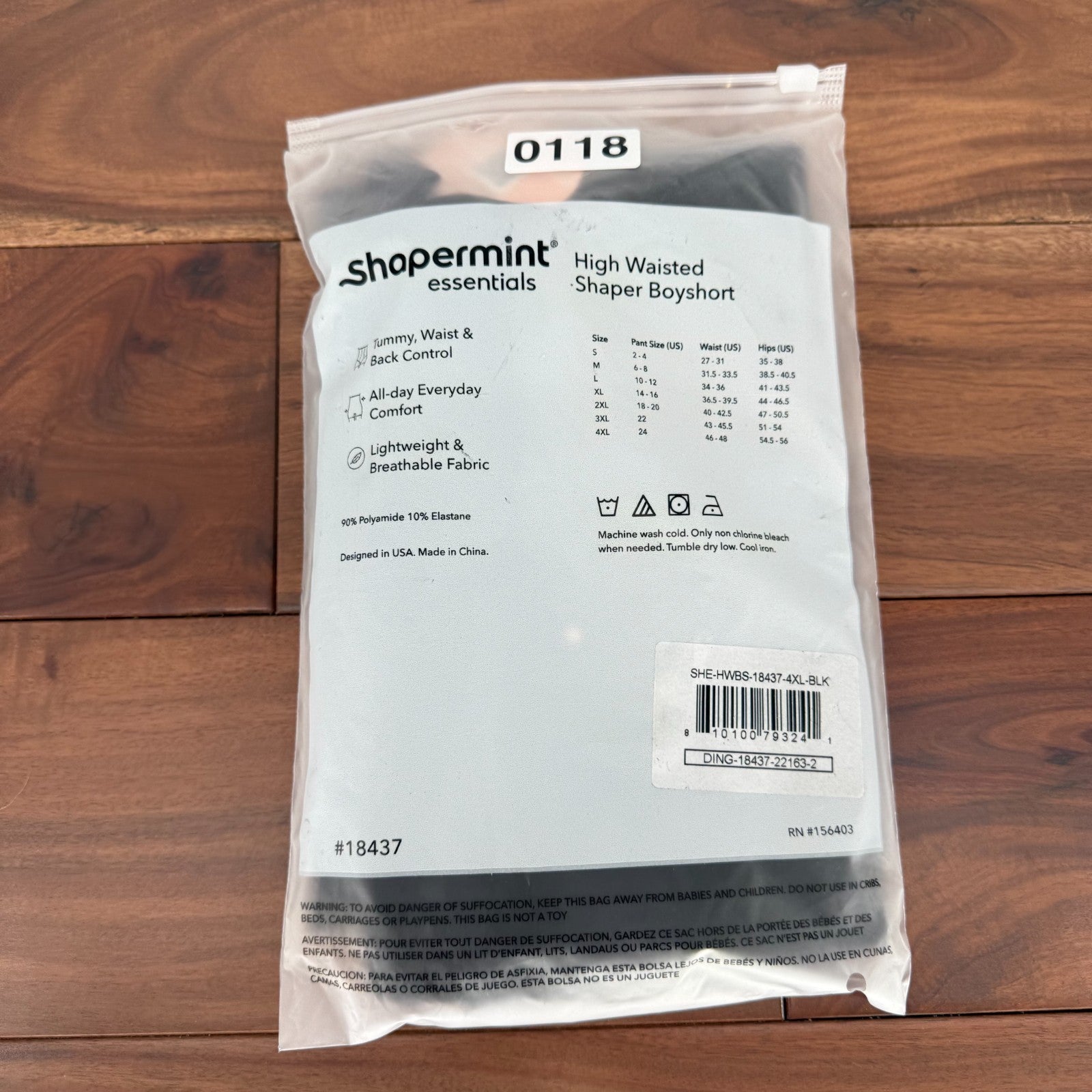 Shapermint Essentials High Waisted Shaper Boyshort Womens 4XL Black Shapewear