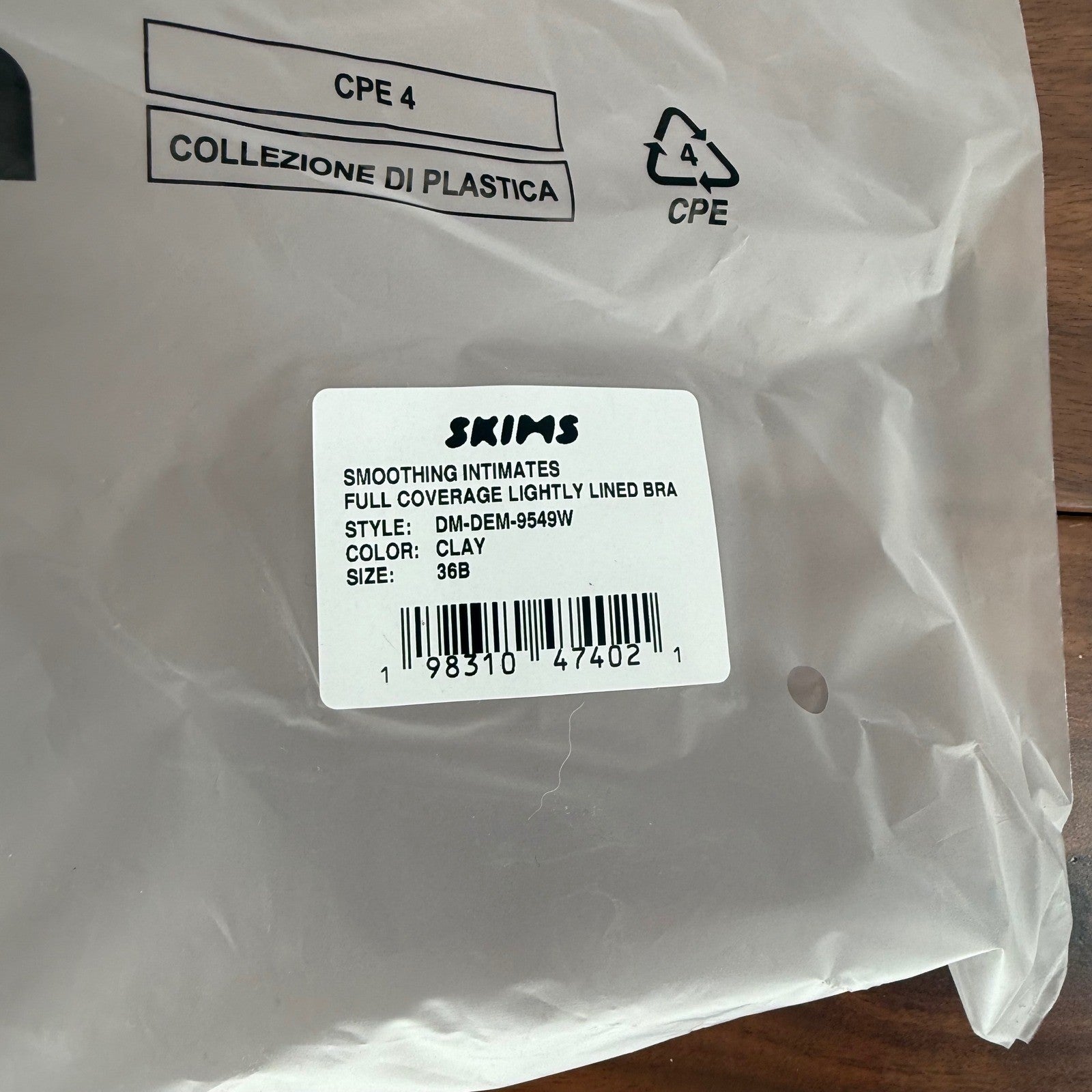 Keywords: SKIMS bra, Smoothing bra, Full coverage bra, Lightly lined bra, Seamless bra, Everyday bra, Comfortable bra, Supportive bra, Women's bra, New with tags bra, Clay bra, 36B bra, Shapewear bra, Foundational bra
