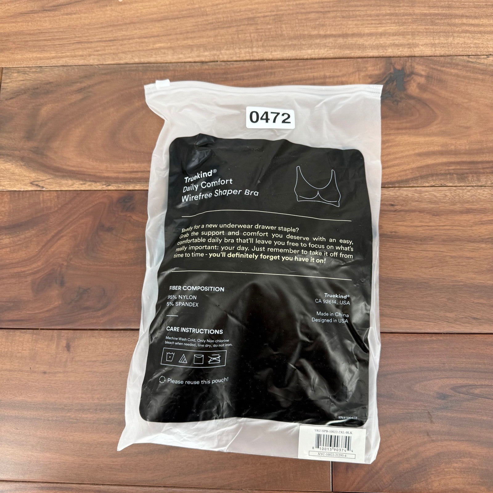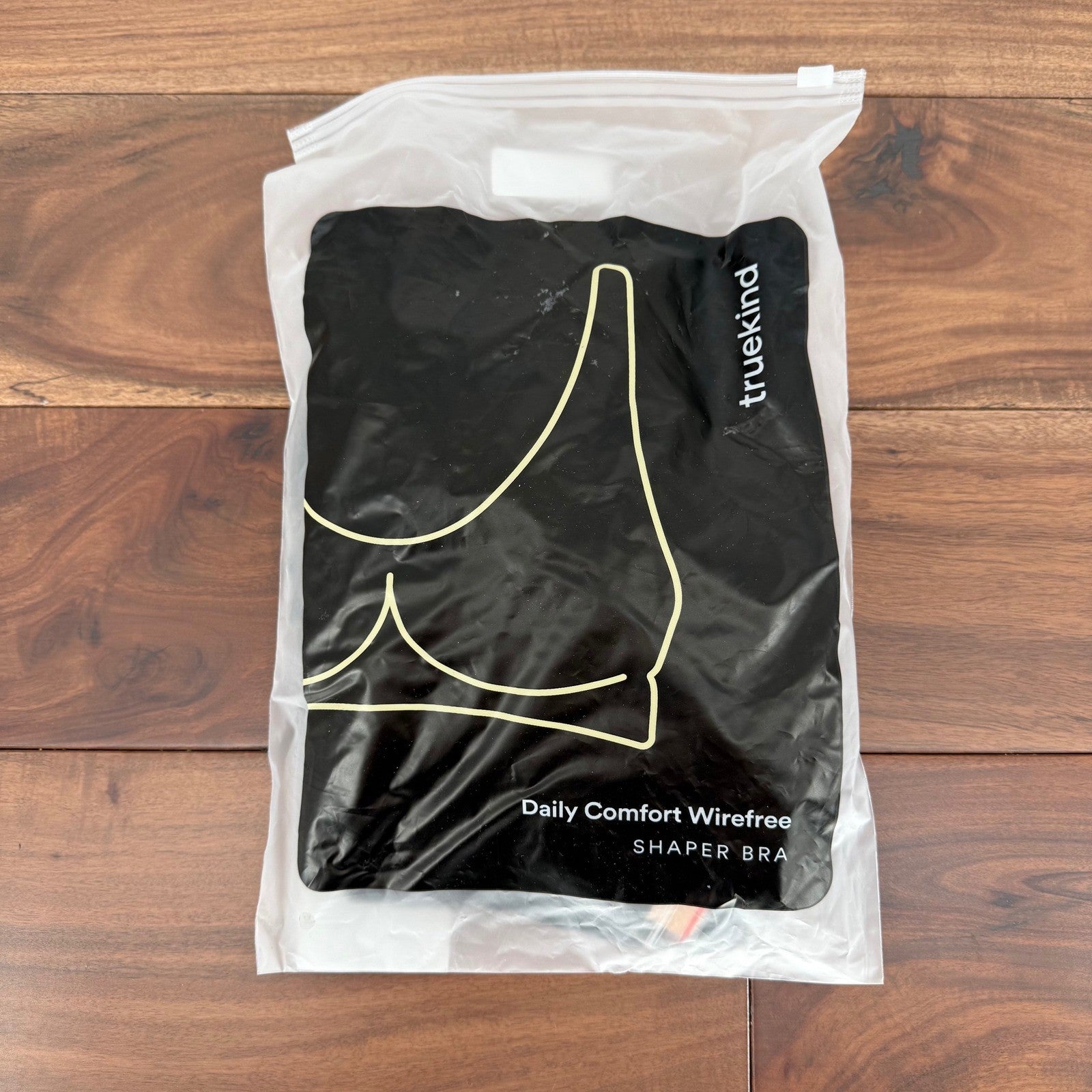A new, in-package Truekind Daily Comfort Wirefree Shaper Bra. Designed for everyday wear, it offers the support and comfort of a traditional bra without the wires. This shaper bra is crafted to provide a smooth, flattering silhouette under clothing. Its seamless design ensures no lines or bulges. Perfect for wearing under t-shirts, at the gym, or during relaxed weekends, this bra blends seamlessly into your lifestyle, offering all-day support.