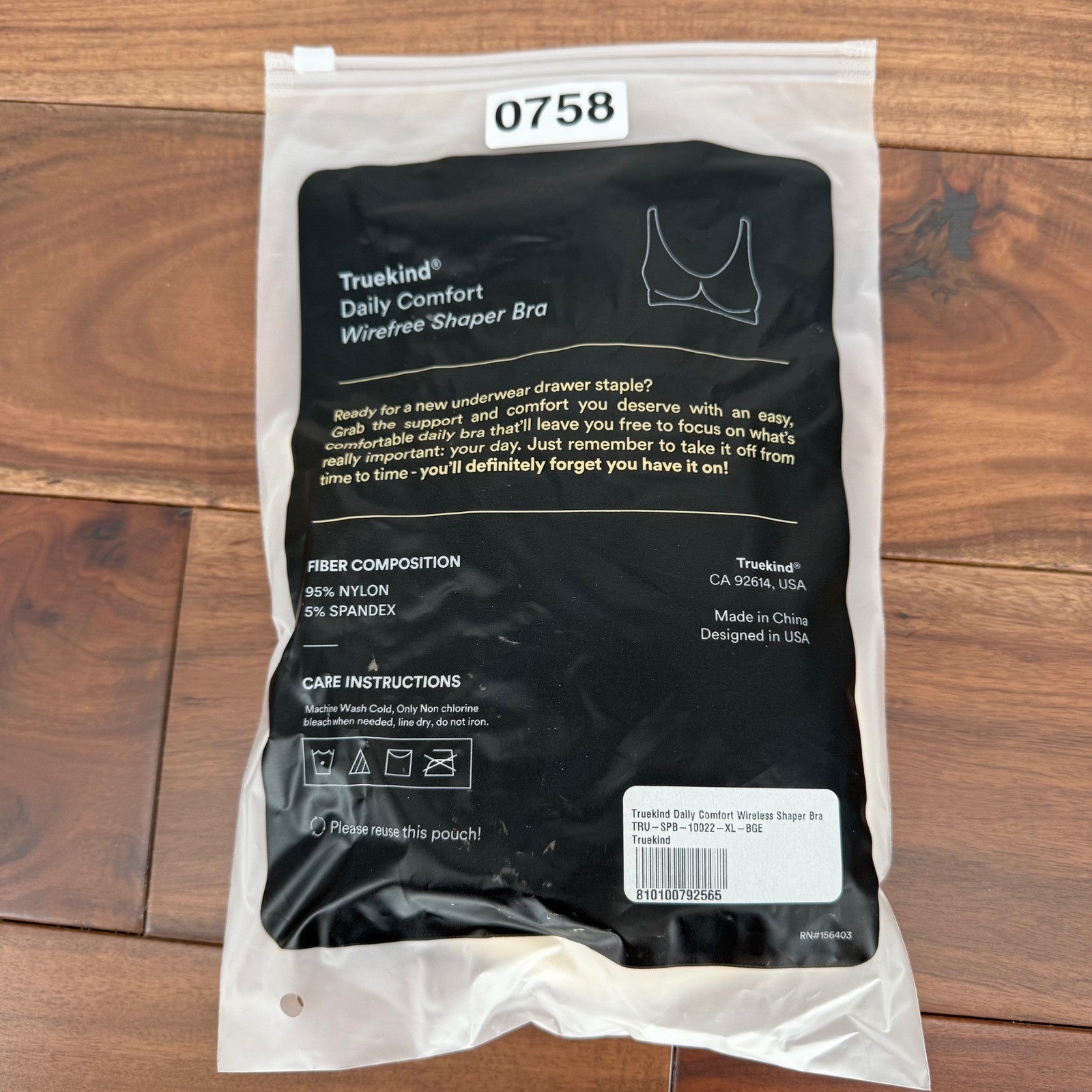 Keywords: Truekind bra, wirefree bra, shaper bra, comfort bra, daily bra, beige bra, nylon bra, XL bra, new bra, lingerie, intimates, casual bra, support bra, seamless bra