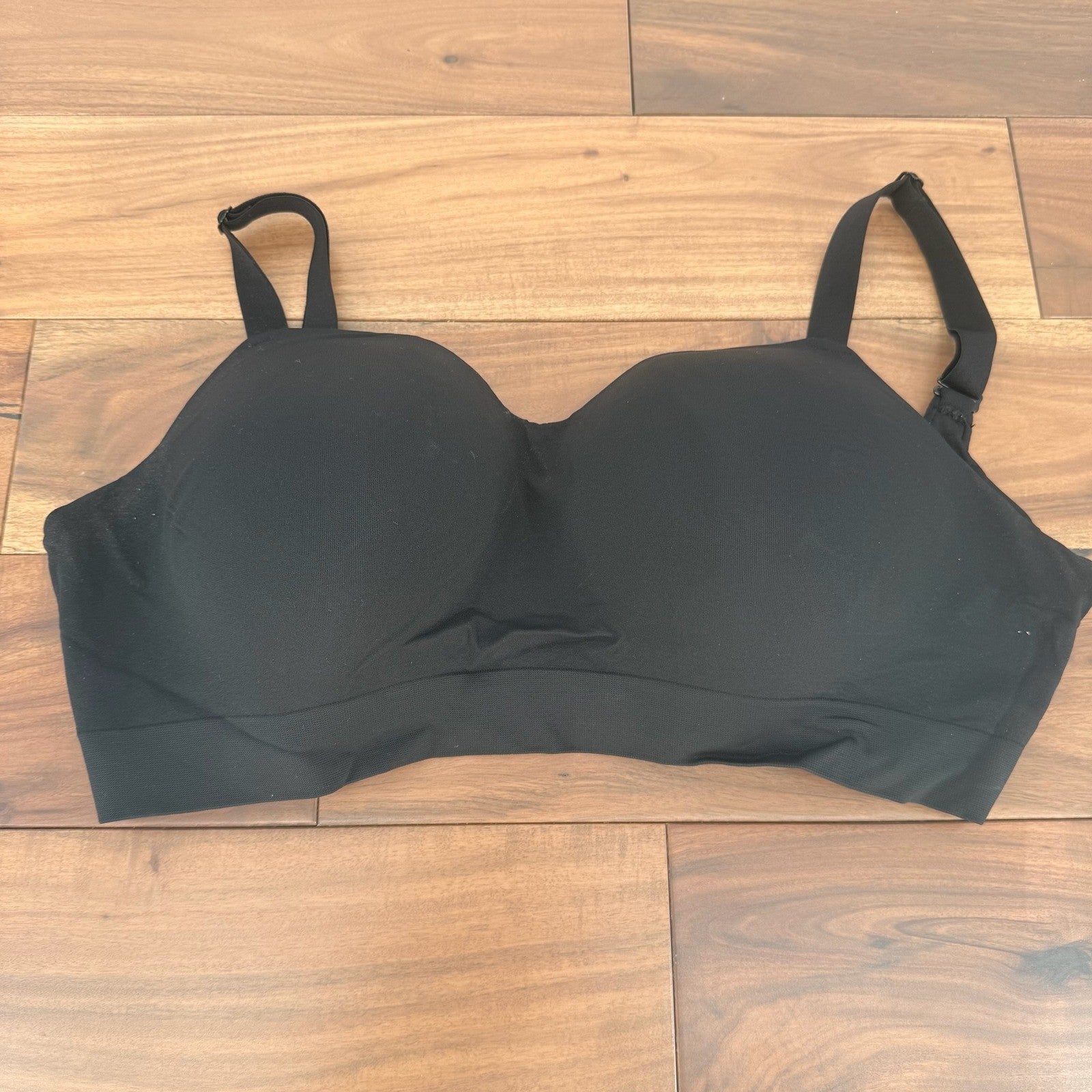 A black Truekind supportive comfort wireless shaping bra in size 2XL. This bra is designed for everyday wear, offering a comfortable and smooth silhouette. Perfect for lounging at home, running errands, or as a base layer under casual outfits.