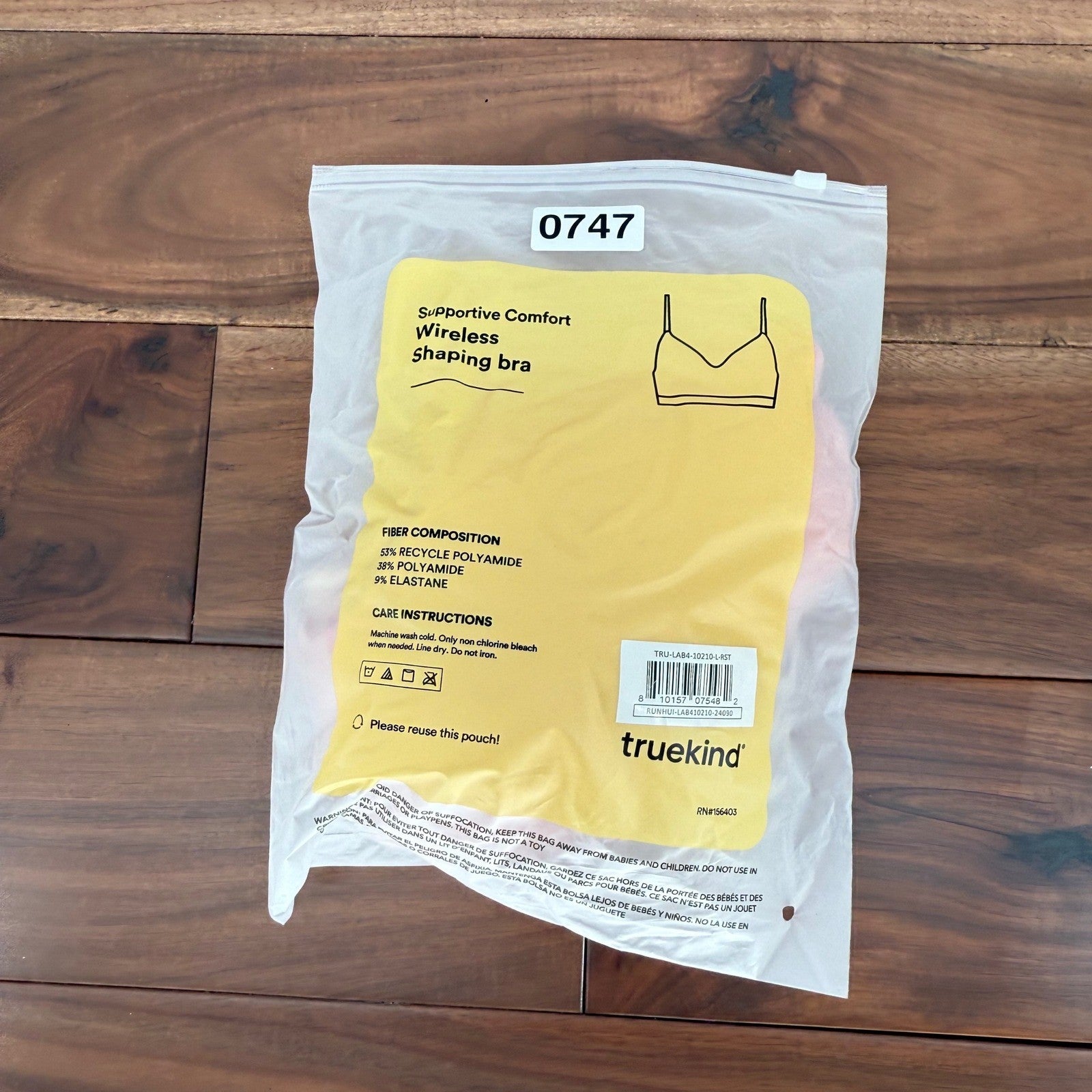 A new with tags Truekind Supportive Comfort Wireless Shaping Bra. This bra offers gentle support and shaping for everyday wear, providing a comfortable and seamless fit. Its wireless design ensures all-day comfort, while its shaping features create a smooth silhouette. Ideal for wearing under t-shirts, blouses, or dresses, this bra is perfect for daily activities, travel, or lounging at home.