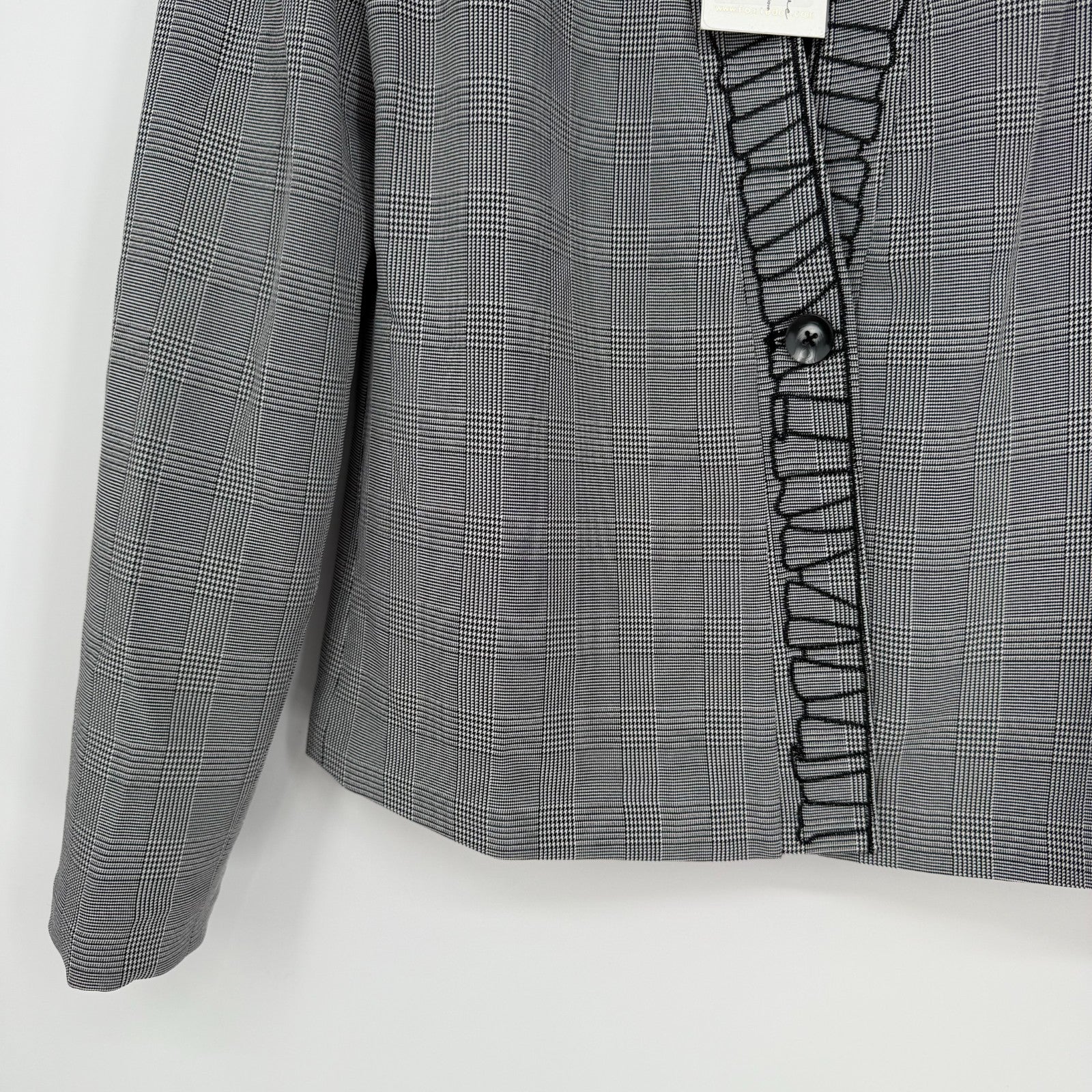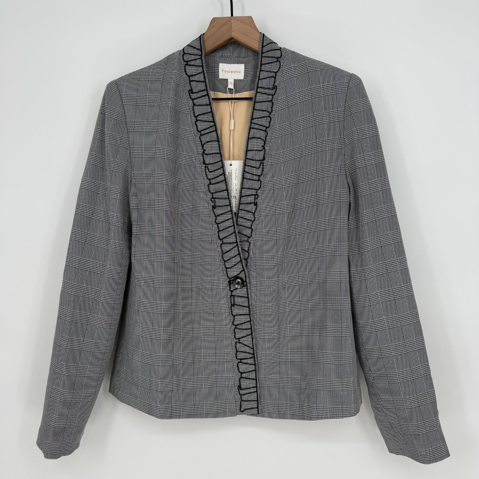 Foxiedox Blazer Jacket Womens 4 Gray Plaid Shawl Lapel Patchwork Lined Business