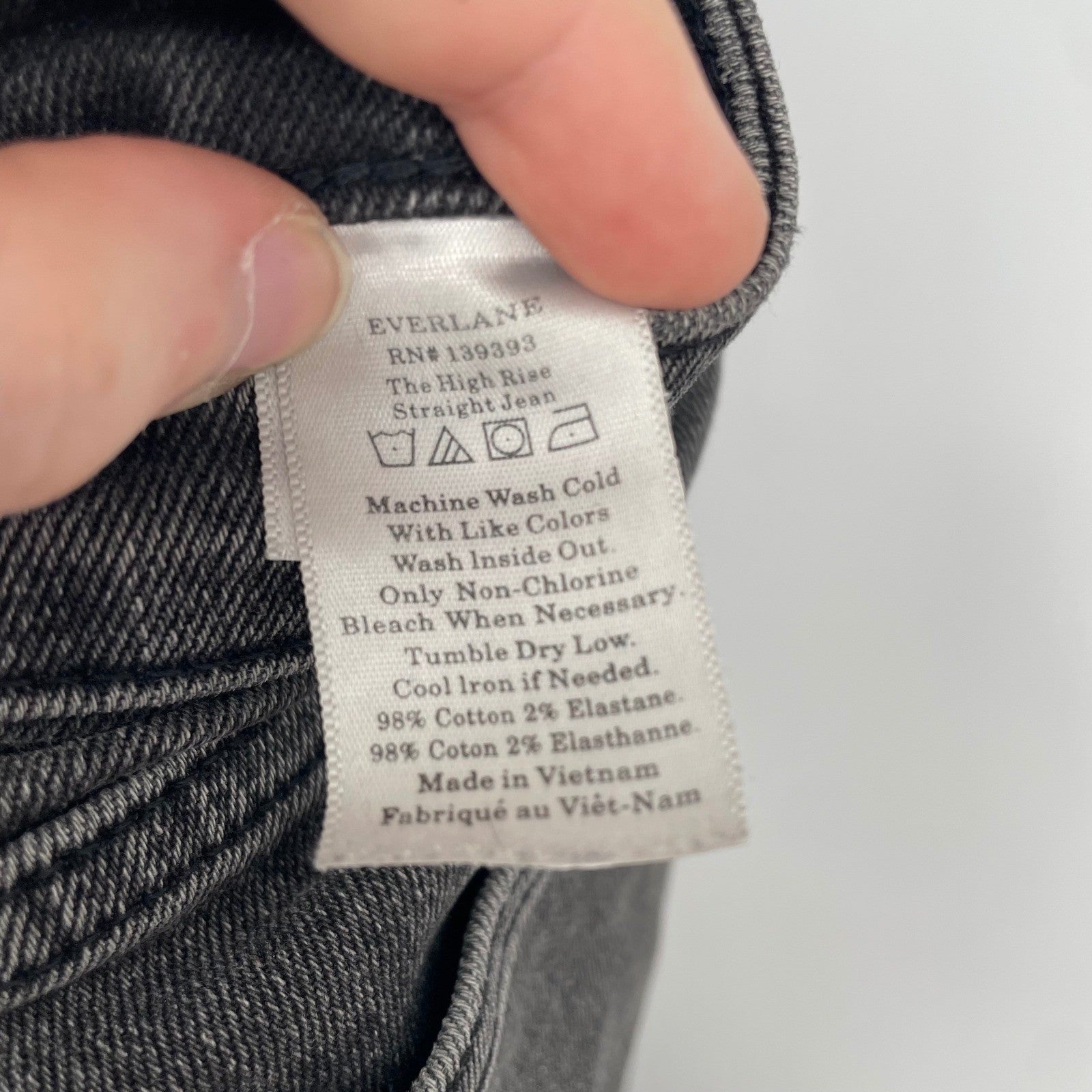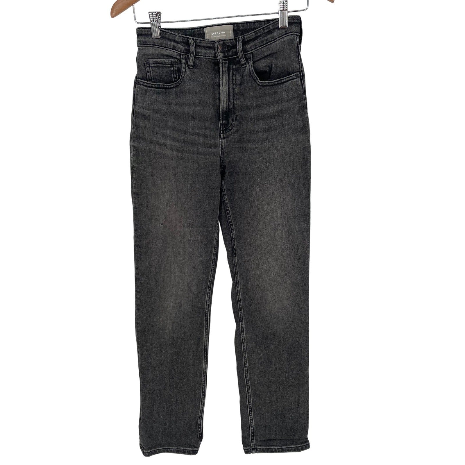 Keywords: Everlane jeans, high rise straight jeans, black wash denim, womens jeans, size 25, straight leg jeans, denim pants, casual jeans, classic jeans, high waisted jeans, regular fit, black denim