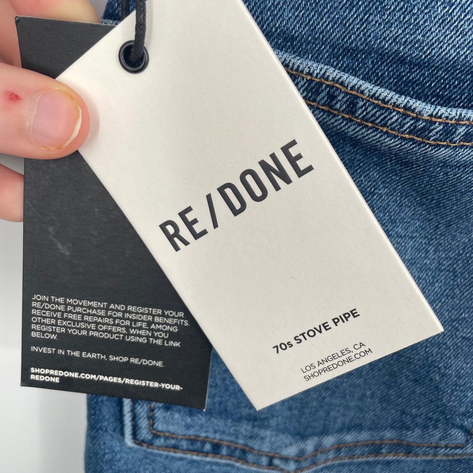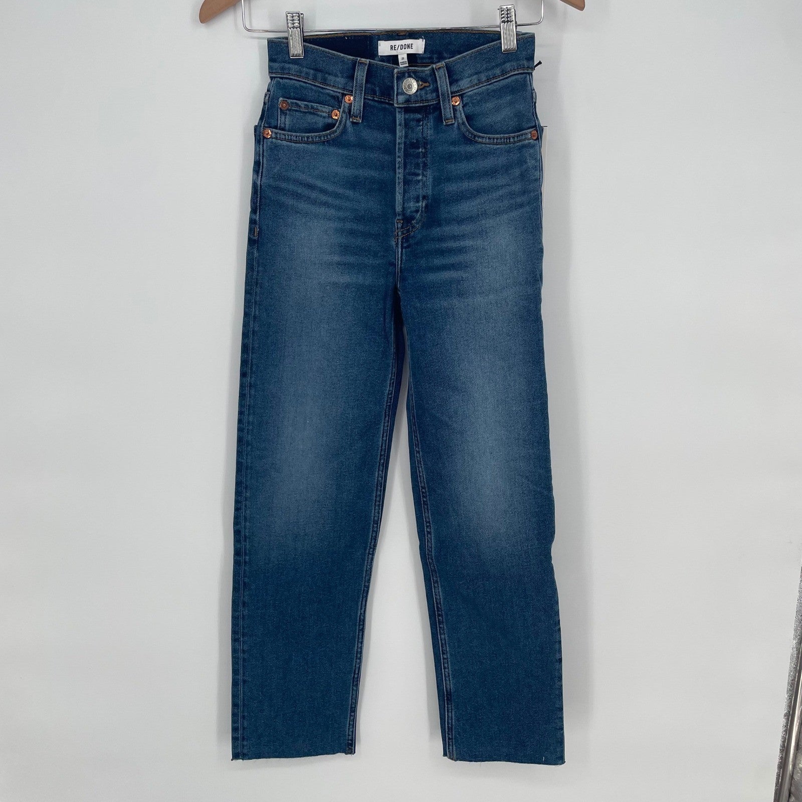 Keywords: RE/DONE jeans, 70s Stove Pipe, high rise jeans, straight leg jeans, cropped jeans, true indigo, size 23 jeans, RE/DONE denim, designer jeans, vintage inspired, classic fit, casual jeans, women's jeans, comfort stretch