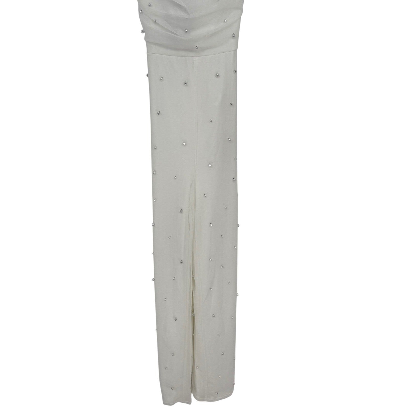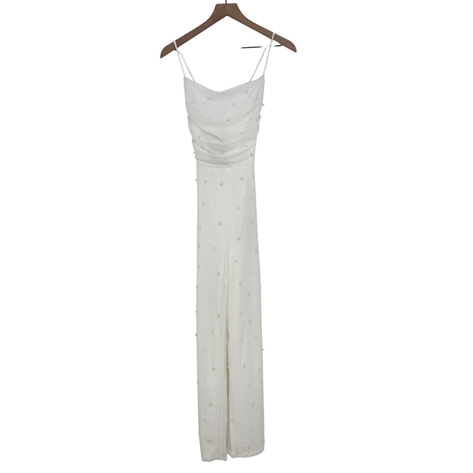 Lulus Unbelievably Divine White Mesh Pearl Lace-Up Jumpsuit Size S