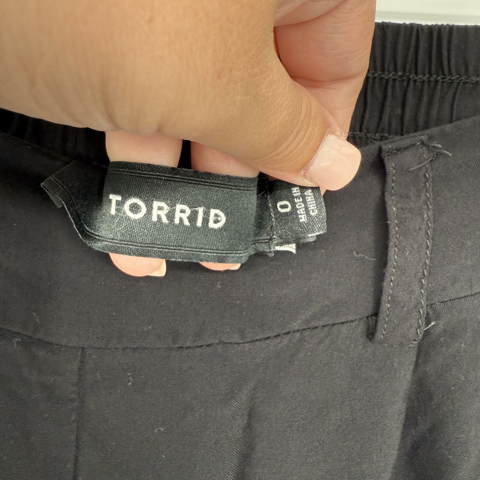 Torrid Chino Pants Womens 0 Black Rayon Stretch Pleated Wide Leg Elastic Waist