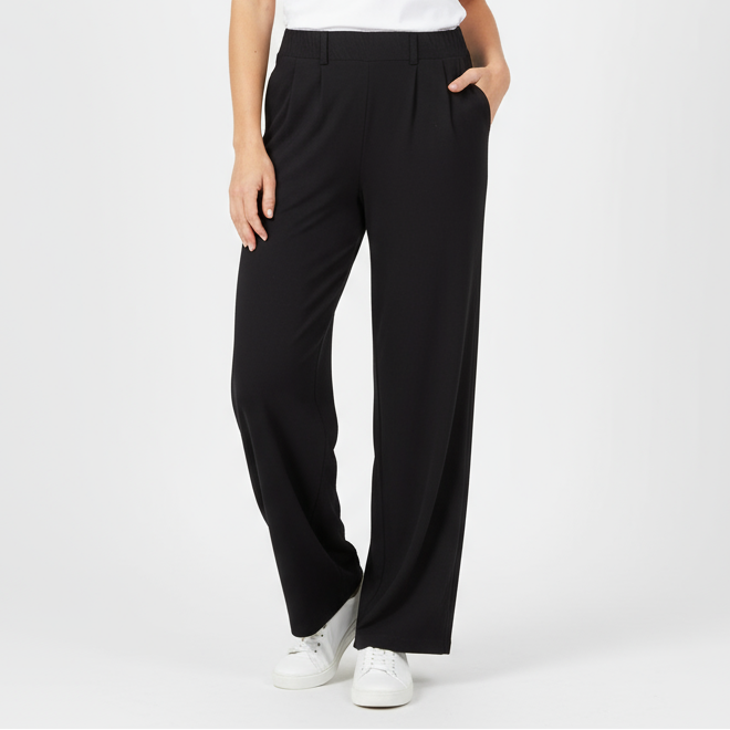 Torrid Chino Pants Womens 0 Black Rayon Stretch Pleated Wide Leg Elastic Waist