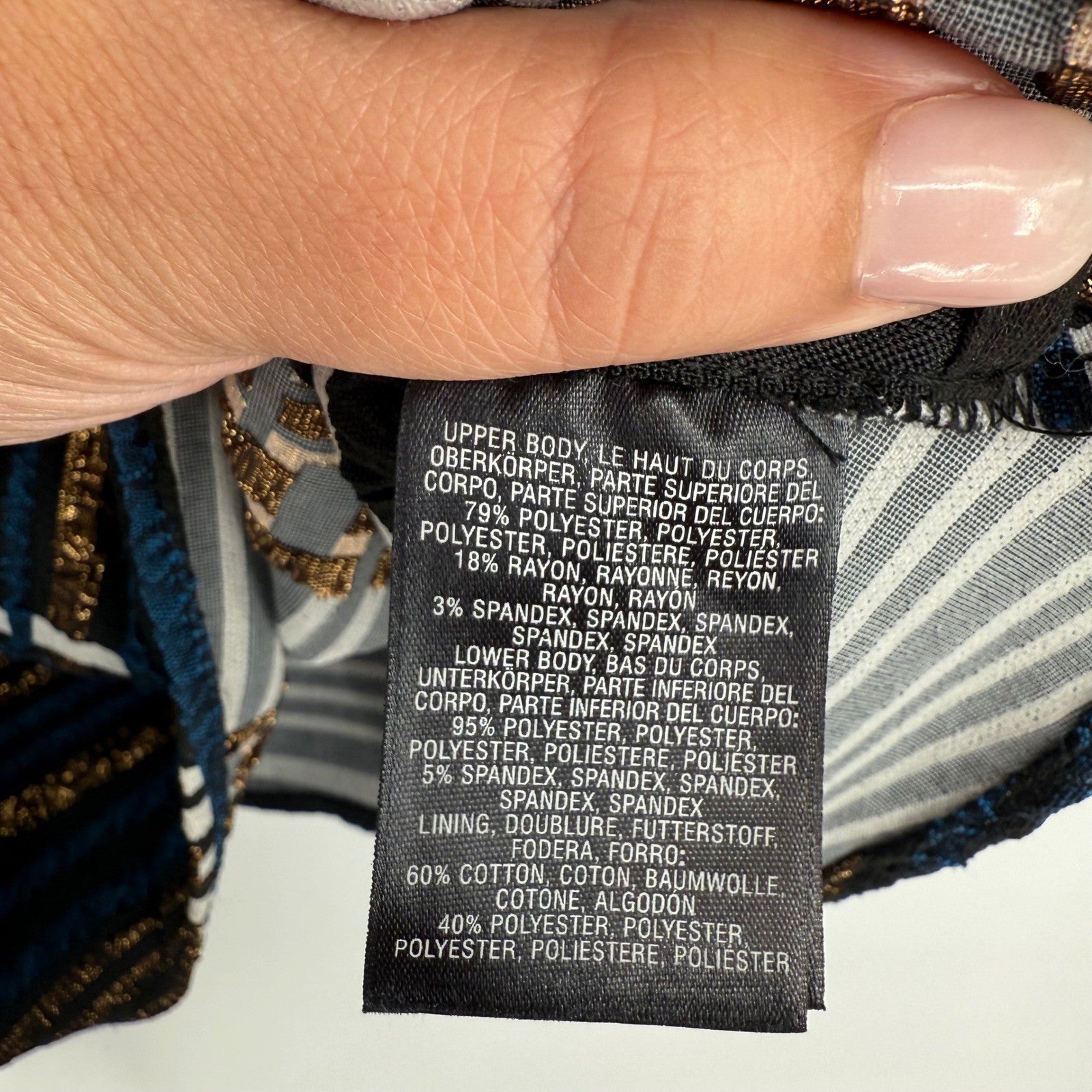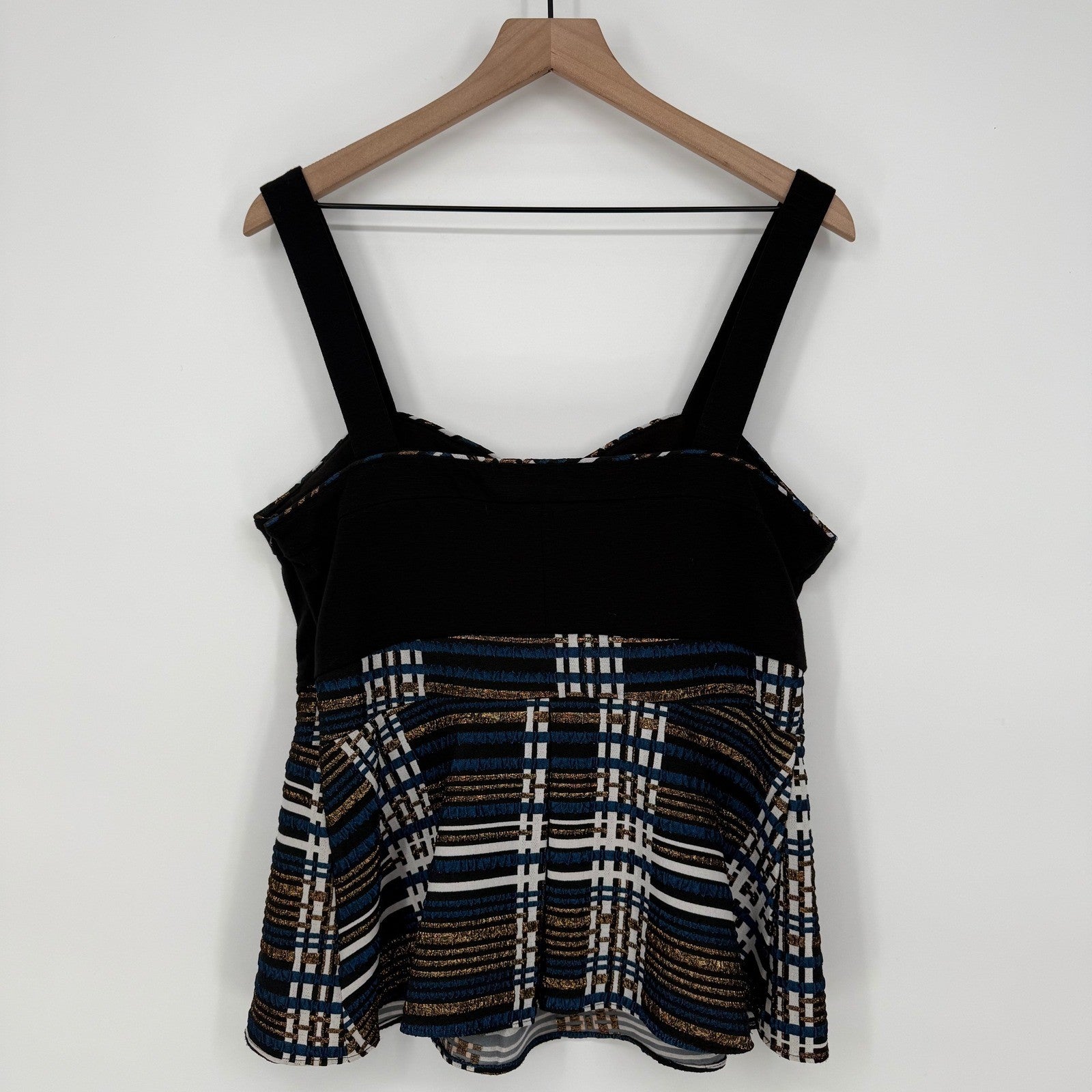 Anthropologie Deletta Nathalie Peplum Top Black Pleated Stripes Plaid Size L