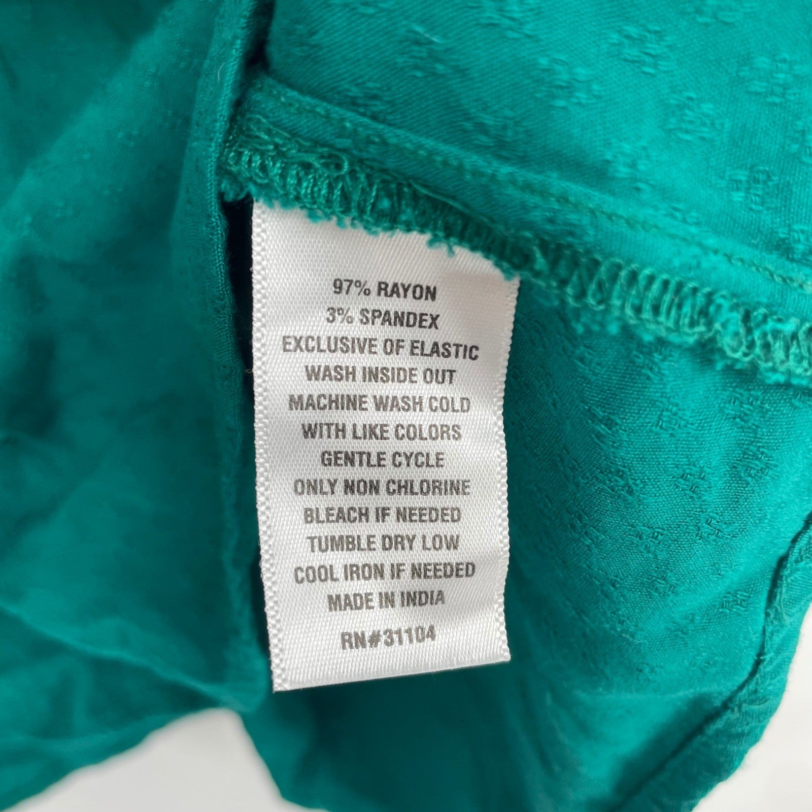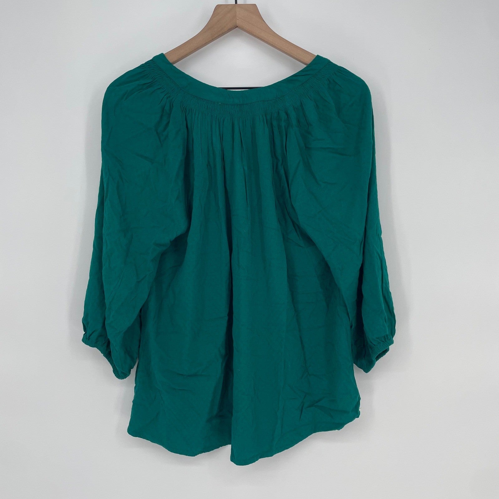 Crown Ivy Teal Green Textured Gathered Neck 3/4 Sleeve Blouse Top Size S