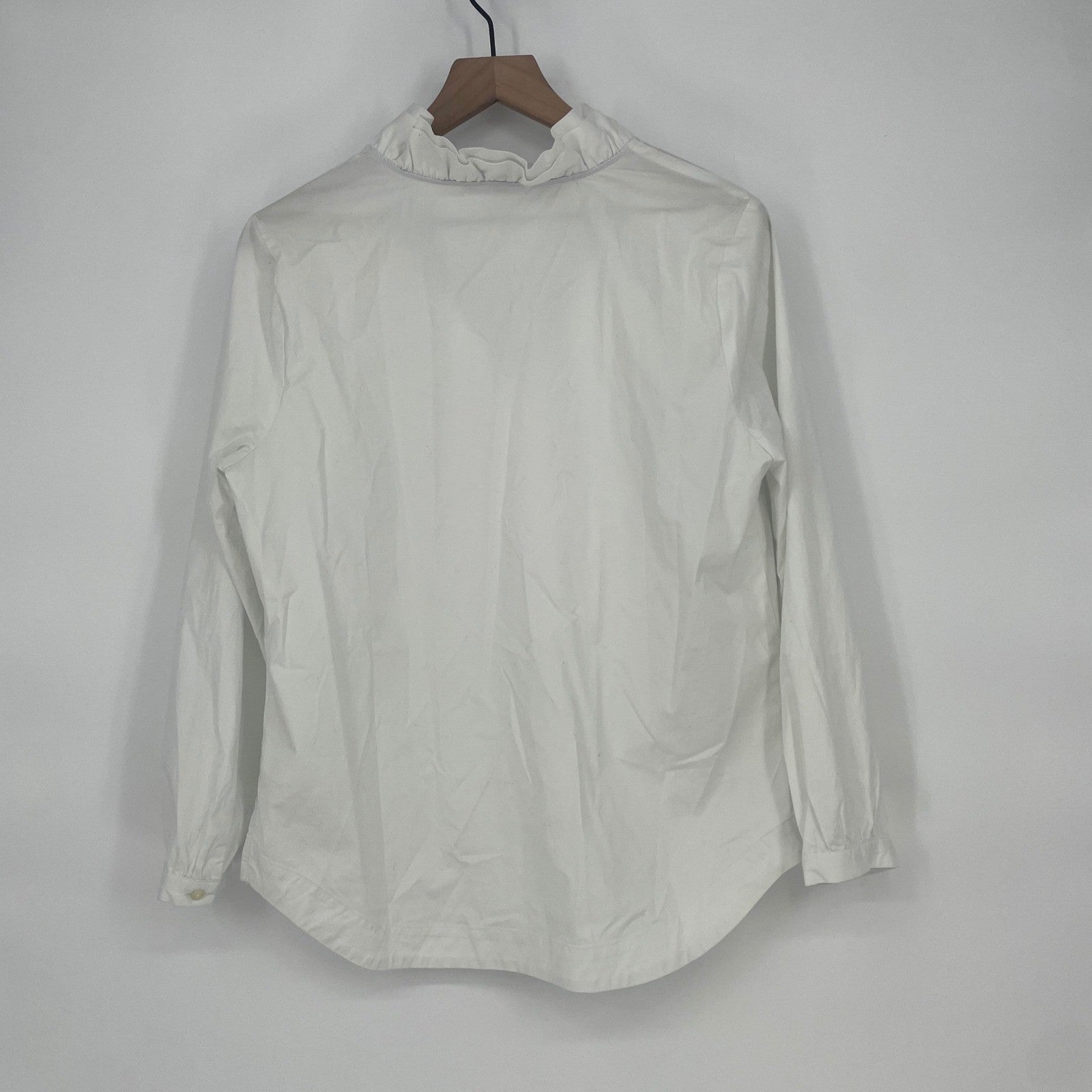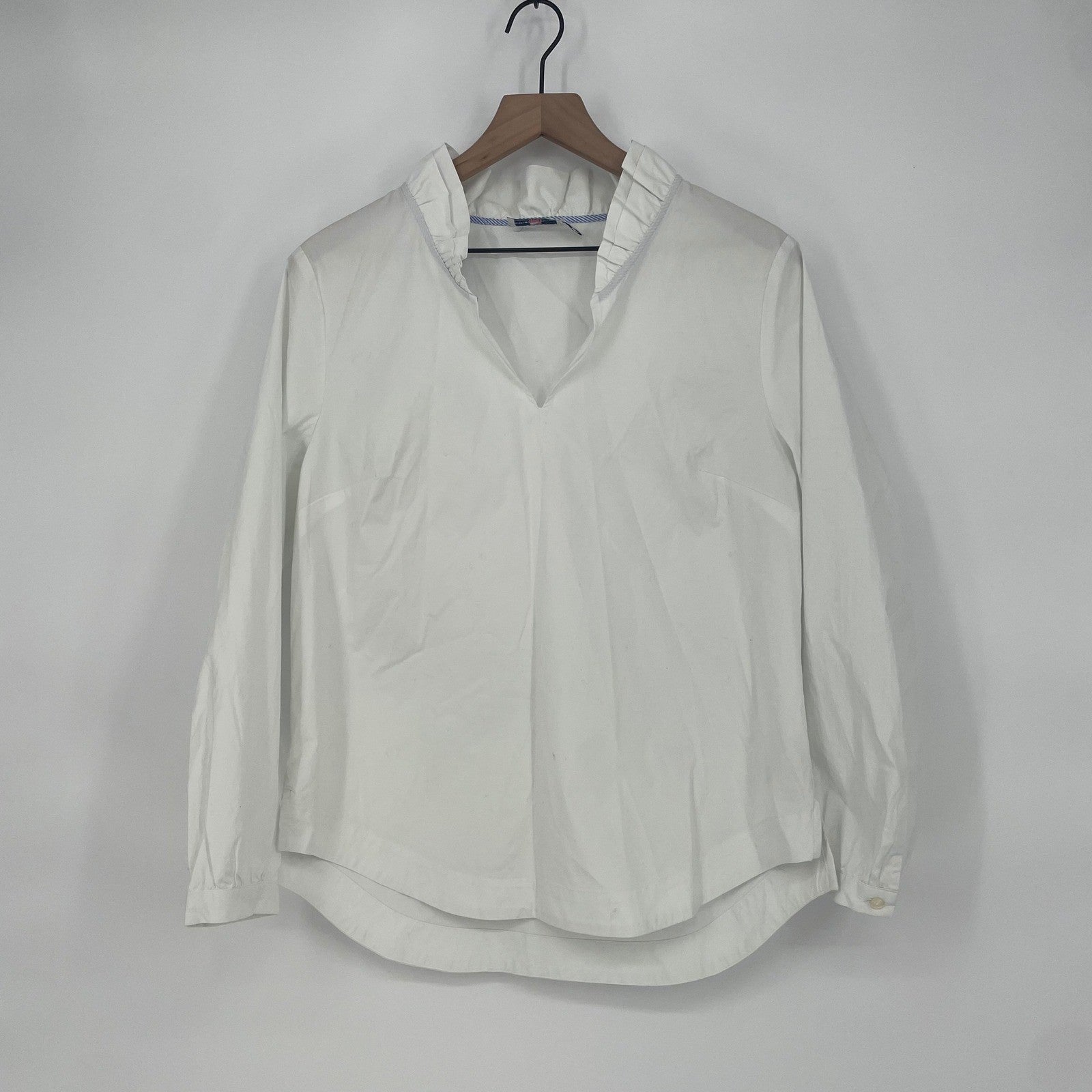 Vineyard Vines White Ruffled Collar V Neck Long Sleeve Cotton Blend Shirt Medium