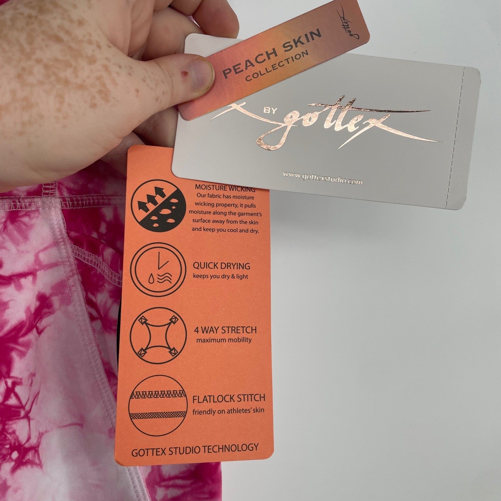 Keywords: Gottez, Peach Skin Collection, athletic shorts, high waist, tie dye, pink shorts, workout shorts, yoga shorts, running shorts, activewear, side pocket shorts, compression shorts, moisture wicking, quick dry, four way stretch