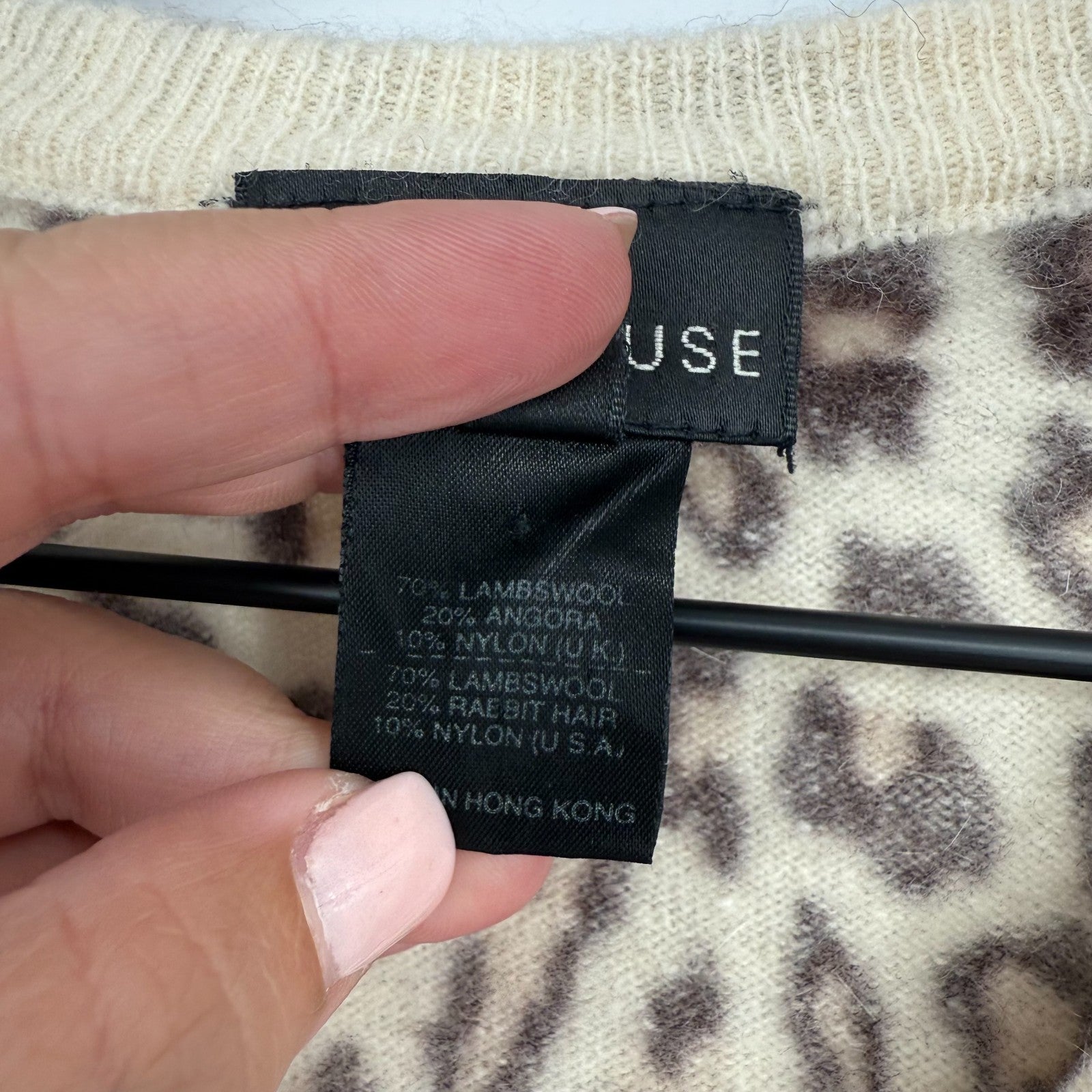 Warehouse Sweater Womens 8 Multicolor Leopard Print Lambswool Tight Knit V Neck