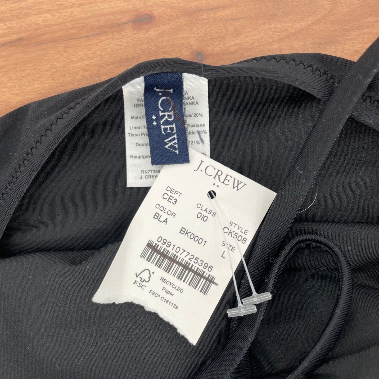 J. Crew black one-piece swimsuit with a flattering halter neckline and a chic keyhole detail. This classic swimsuit offers a timeless silhouette perfect for any beach or poolside occasion.