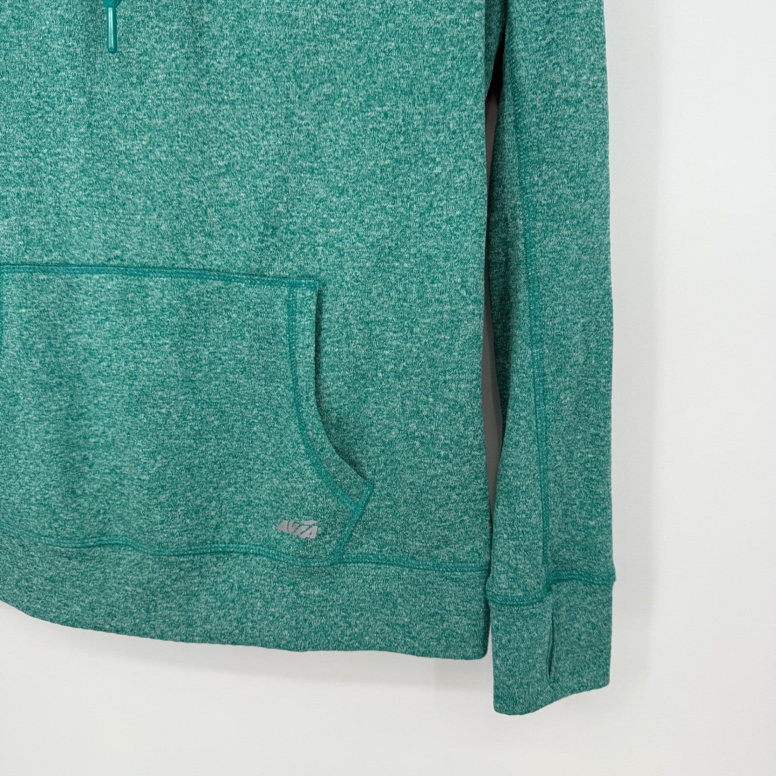 Keywords: Avia hoodie, women's activewear, green hoodie, pullover sweatshirt, thumb hole hoodie, athletic hoodie, workout hoodie, casual hoodie, size large, sports apparel, gym wear, running hoodie, comfortable hoodie, ladies hoodie