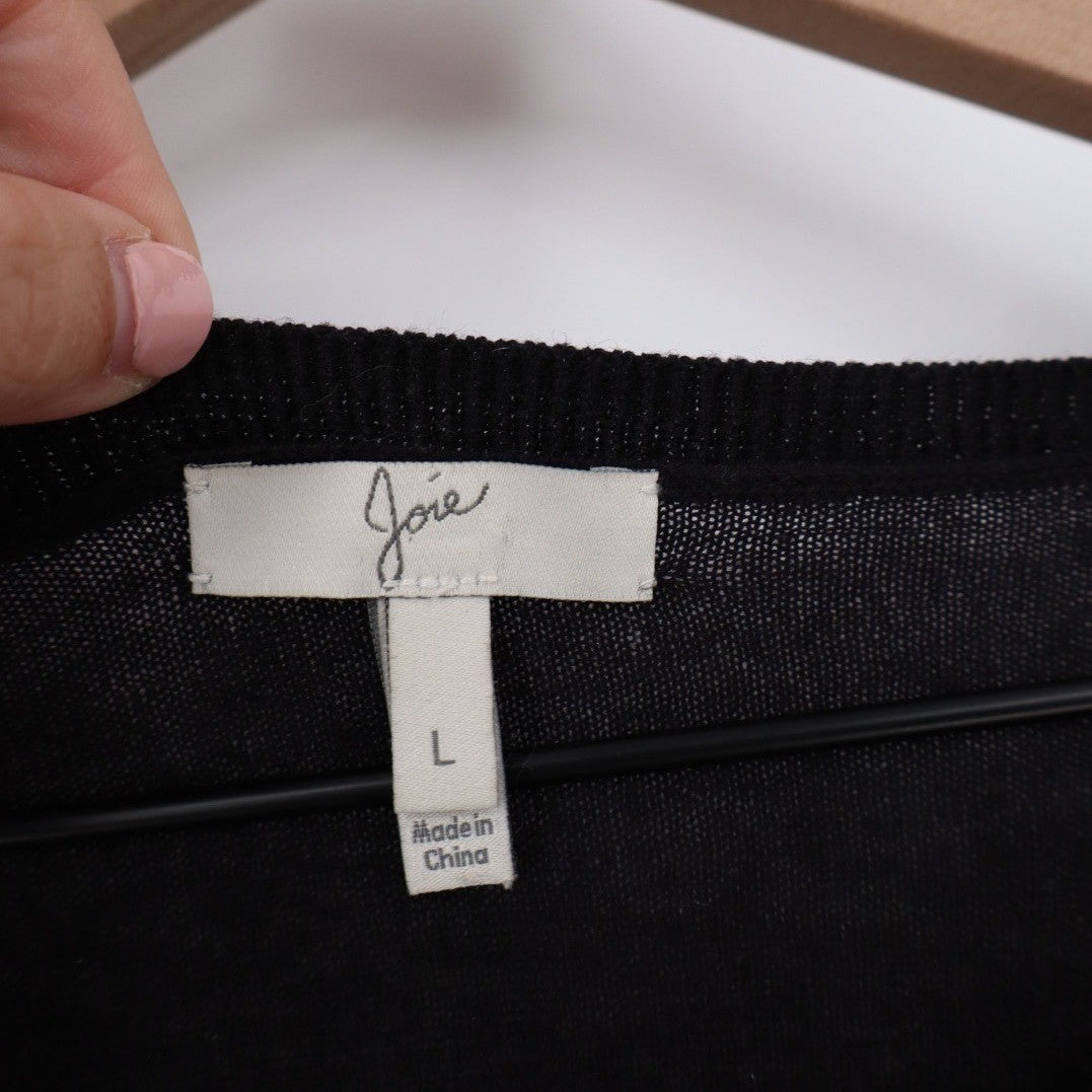 Joie Black Sparkle Sequin Embellished Crew Neck Sweater Size L