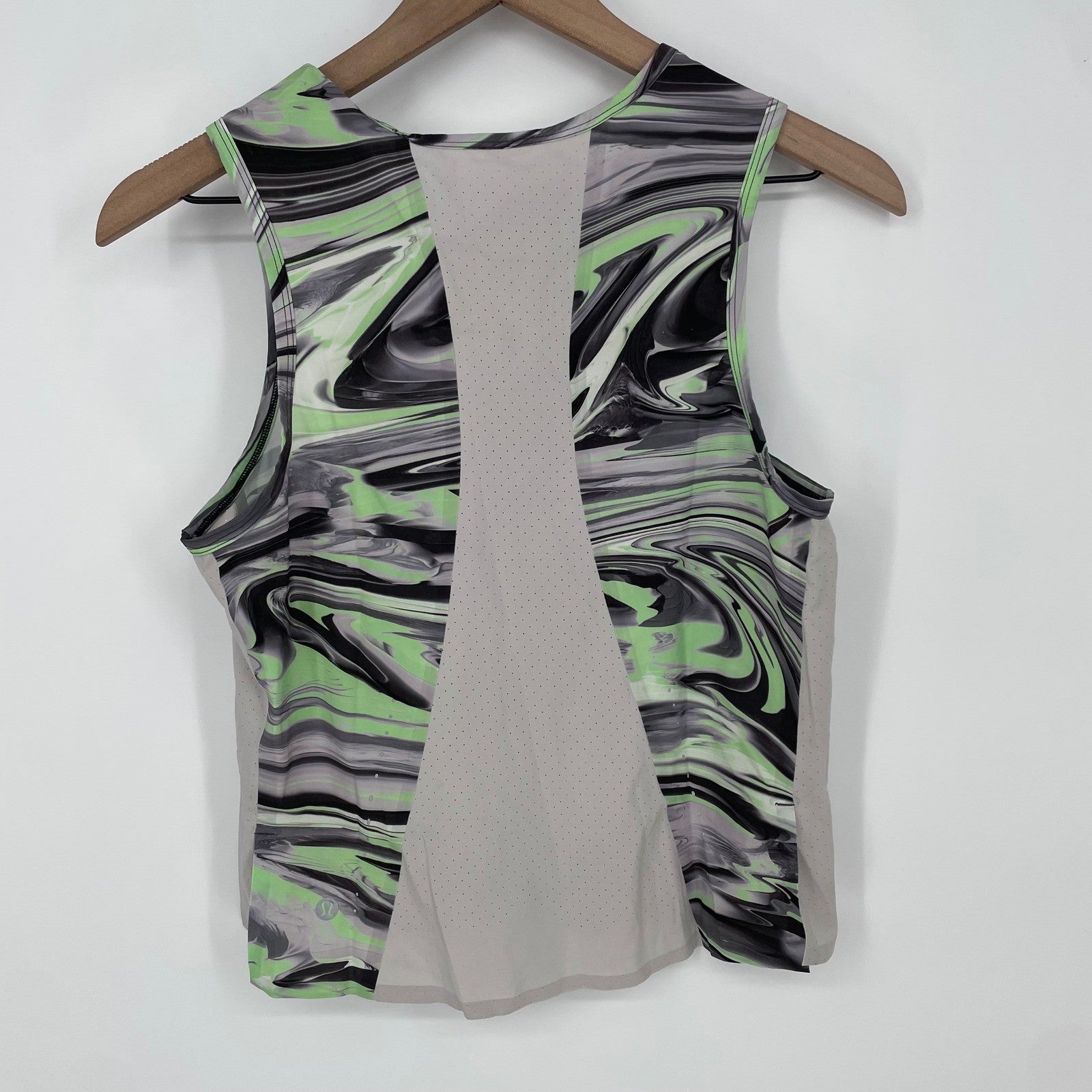 Lululemon Athletic Tank Top Abstract Swirl Green Black White Mesh Back Size M