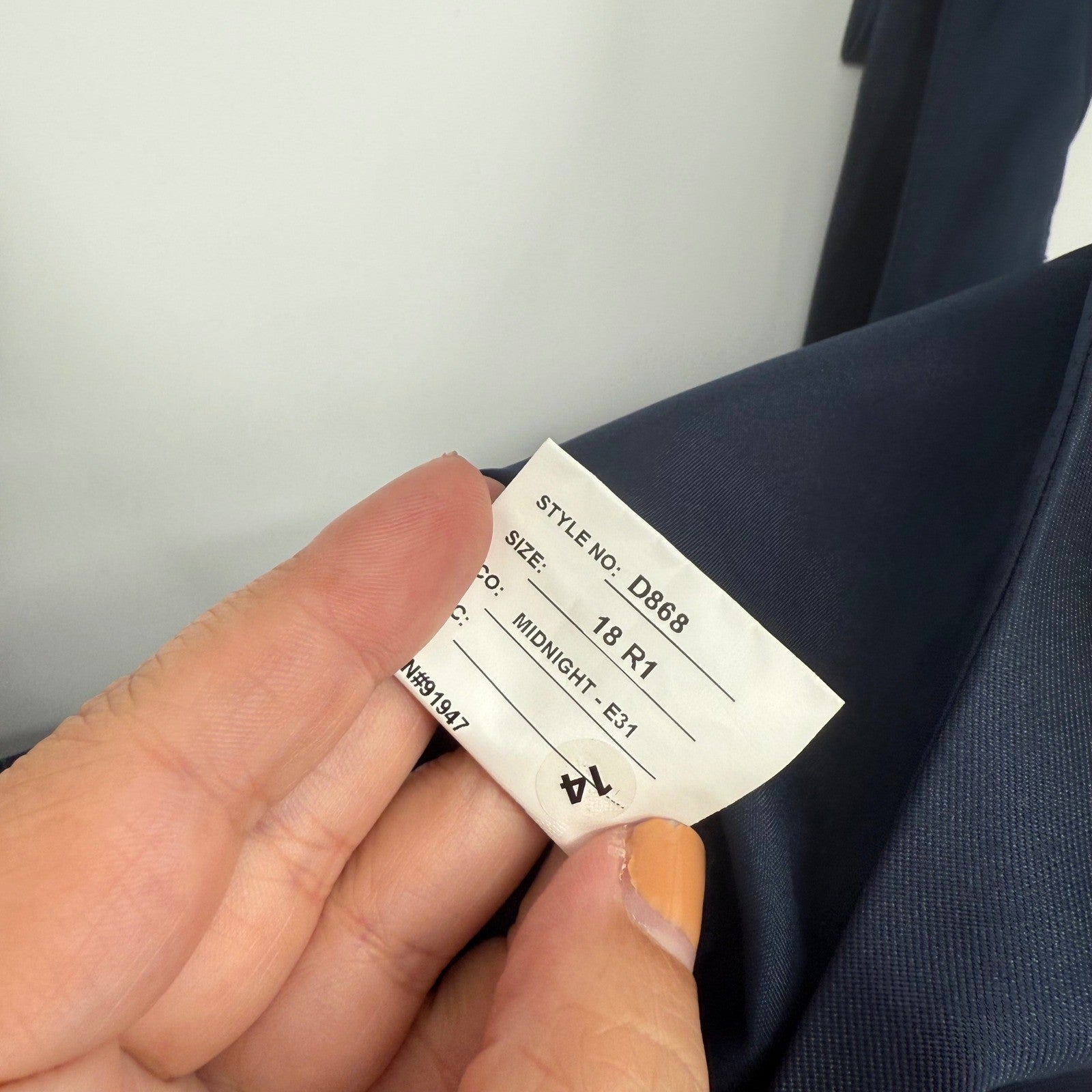 Keywords: Alfred Sung dress, navy maxi dress, square neck dress, bow shoulder dress, formal evening gown, special occasion dress, elegant dress, plus size formal dress, size 18 dress, bridesmaid dress, mother of the bride dress, cocktail dress, party dress