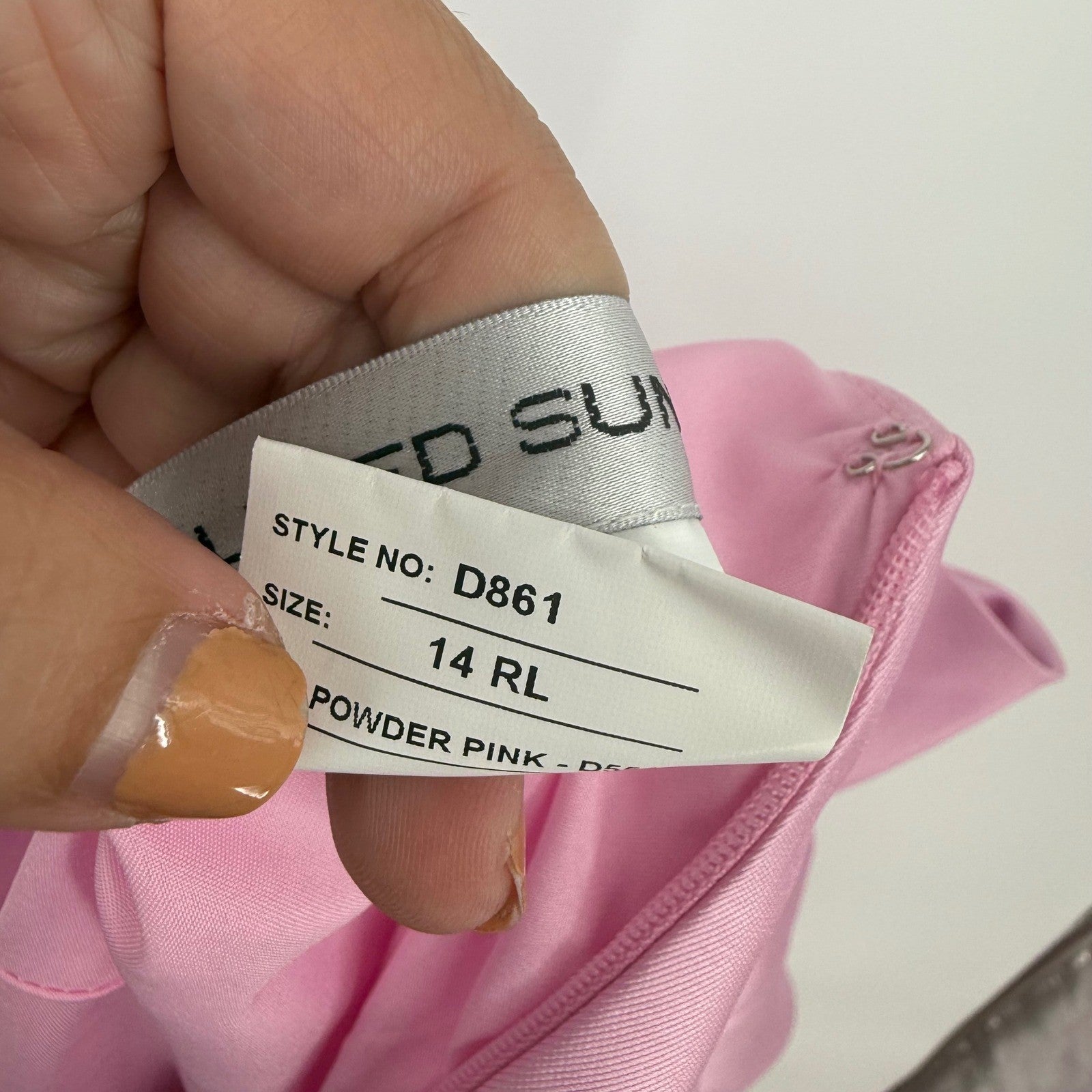 Keywords: Alfred Sung Gown, Powder Pink Dress, One Shoulder Formal Dress, Bow Accent Dress, Long Evening Gown, Size 14 Formal, Party Gown, Wedding Guest Dress, Galala Attire, Special Occasion Dress, Elegant Evening Wear, Chic Formal, Designer Gown