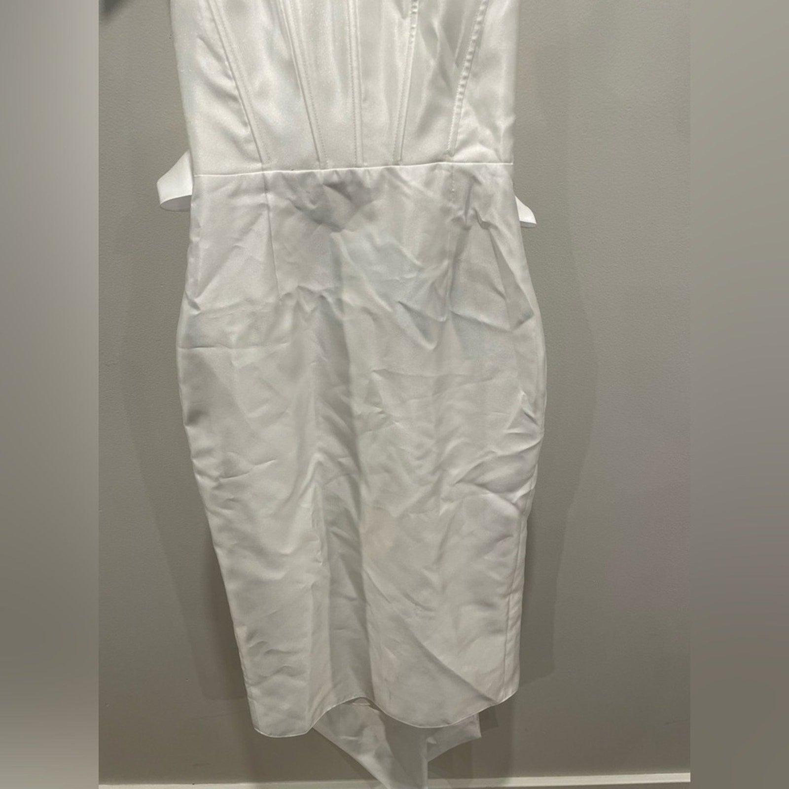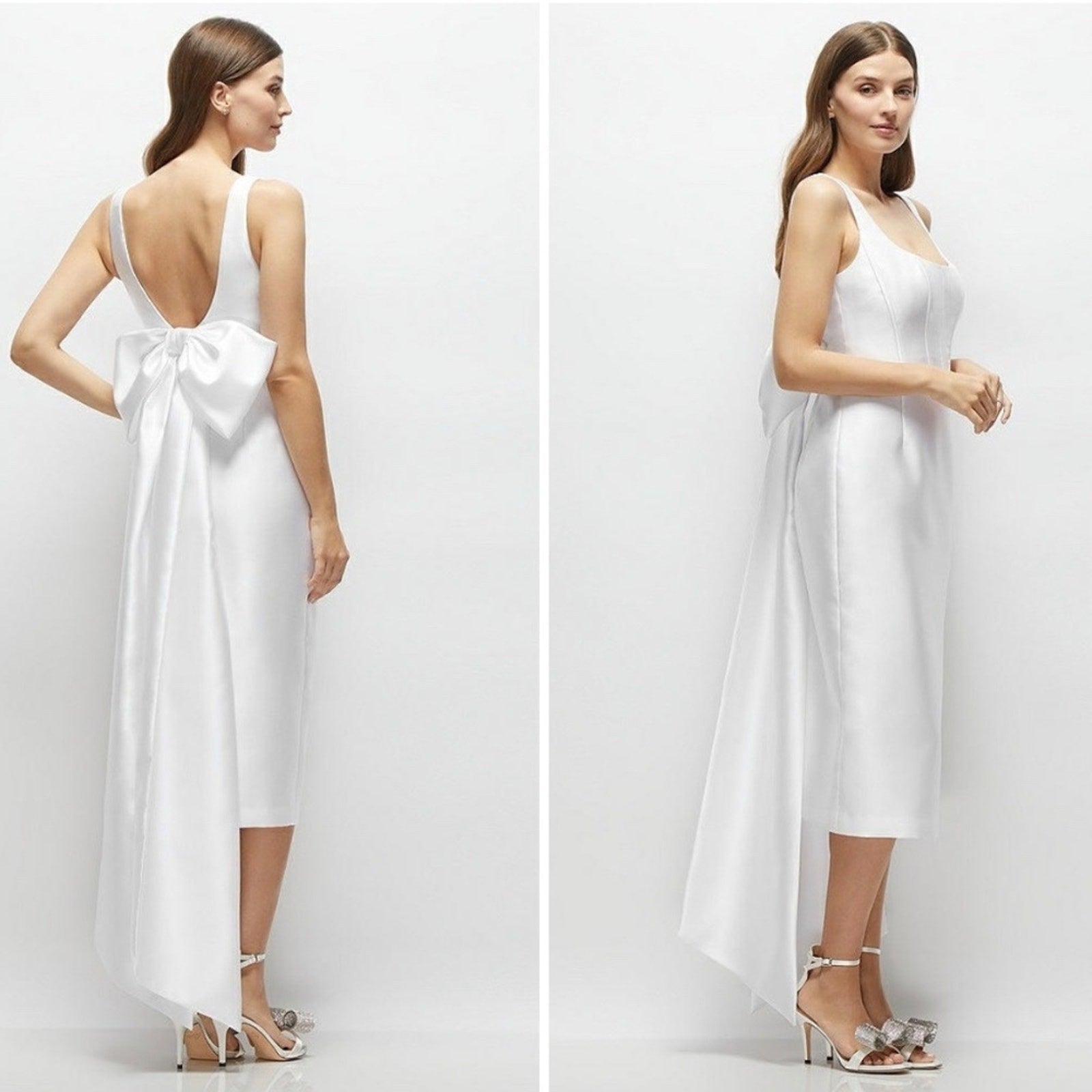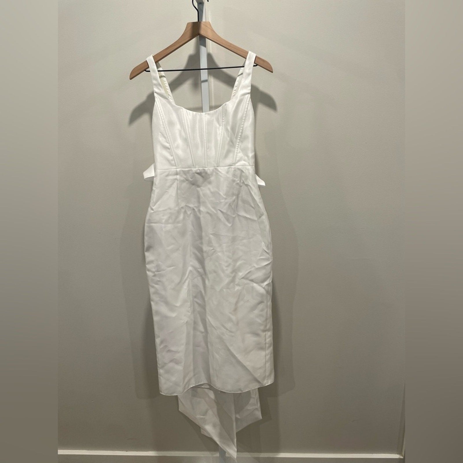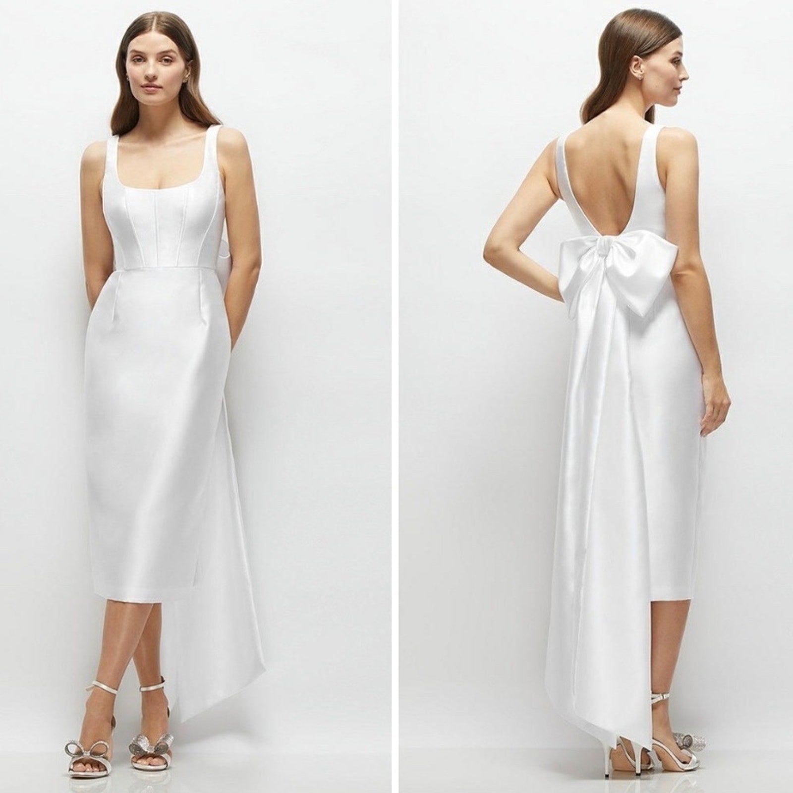 Alfred Sung Scoop Neck Corset Satin Midi Dress With Floor-Length Bow Size 0