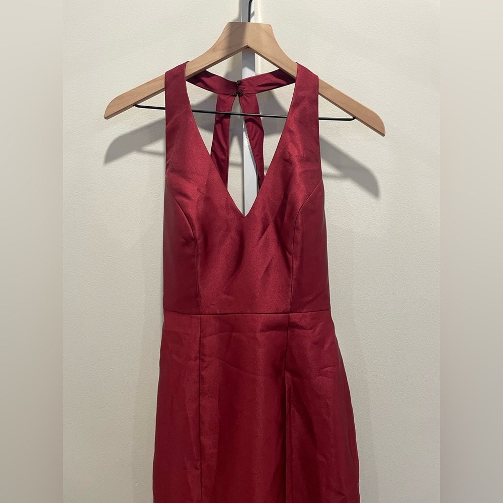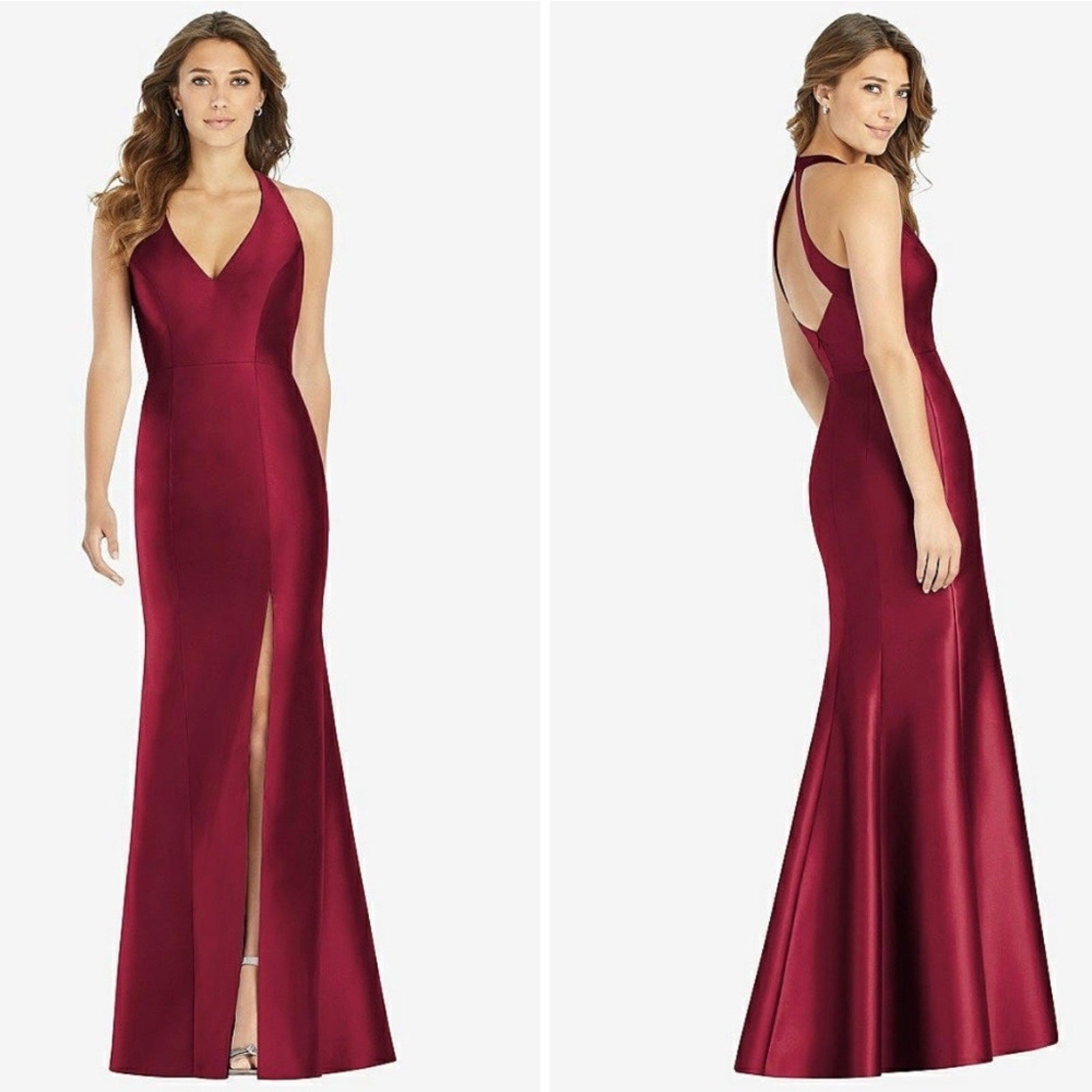 Alfred Sung V-Neck Halter Satin Trumpet Gown in Burgundy Size 2