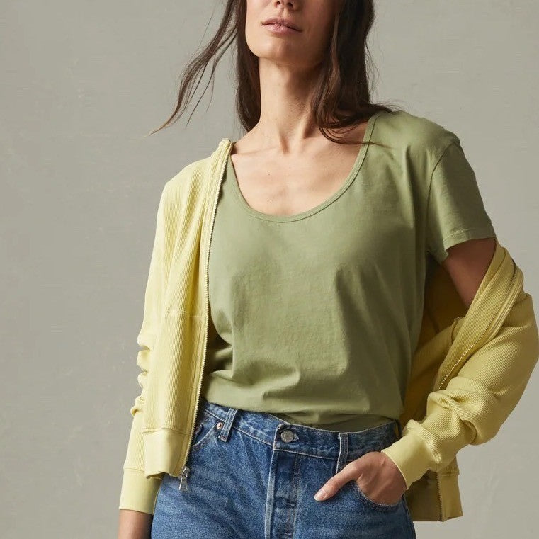 Keywords: American Giant, crew neck, t-shirt, green, cotton, basic tee, everyday wear, casual, layering piece, USA made, comfortable, classic fit, wardrobe staple