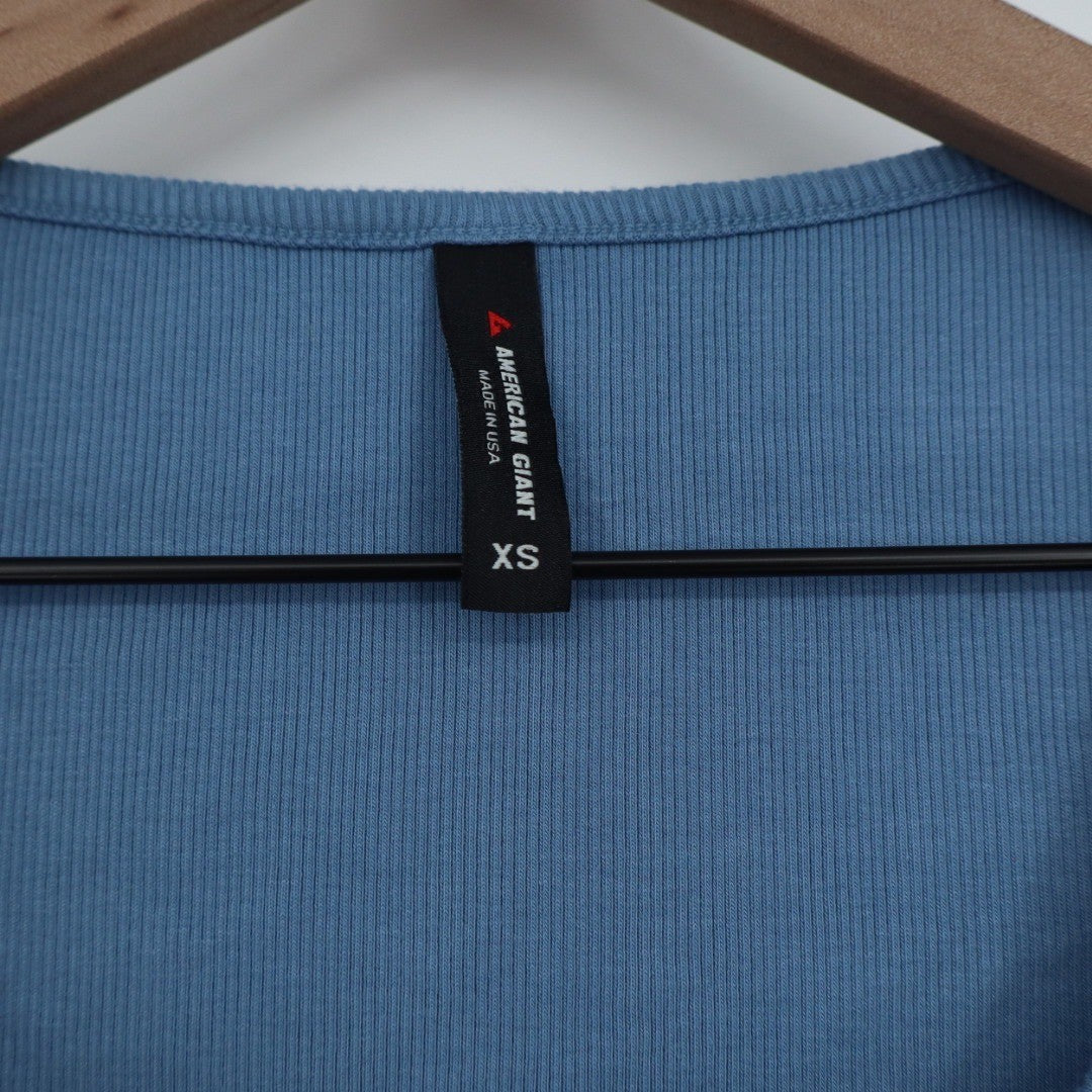 American Giant Ribbed Square Neck Short Sleeve Top Blue XS Made in USA