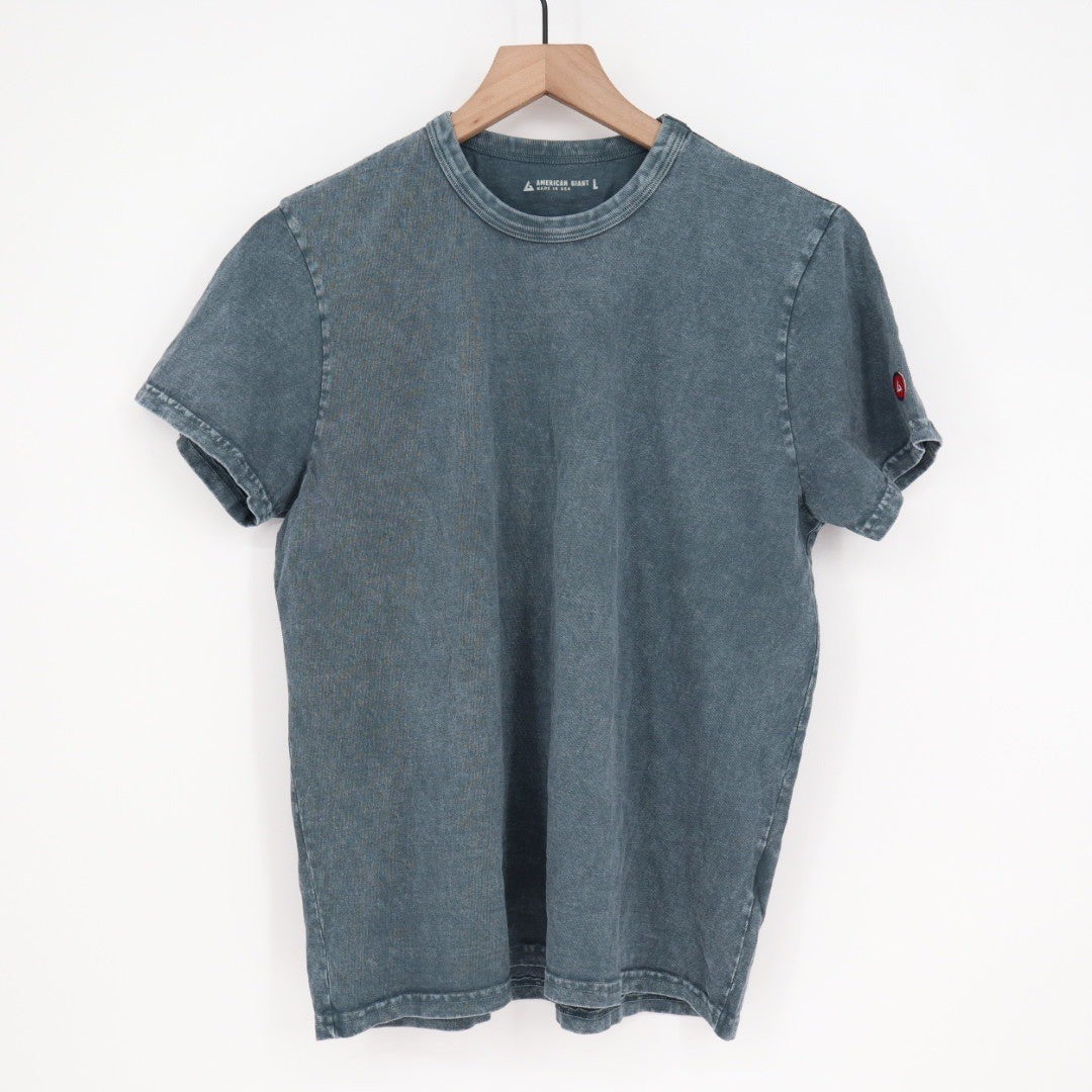 American Giant Washed Cotton TShirt Teal Crew Neck Short Sleeve Size L Made USA