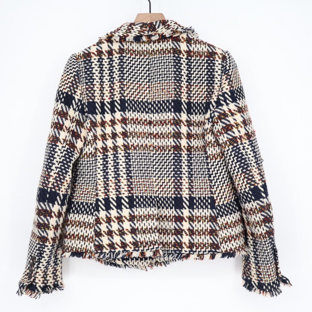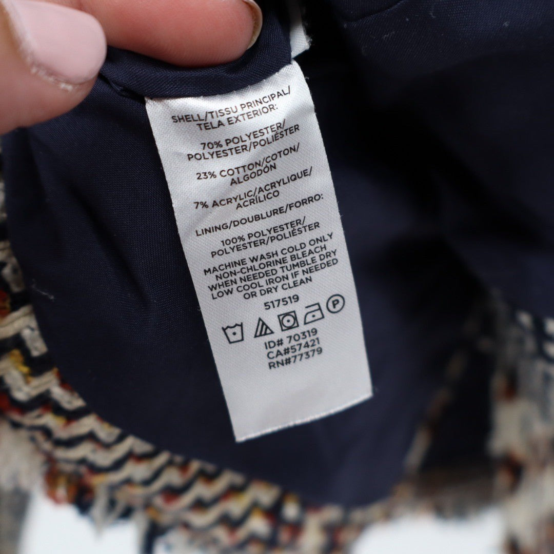 ANN TAYLOR Houndstooth Tweed Fringe Blazer Jacket Navy Cream Red Size 4