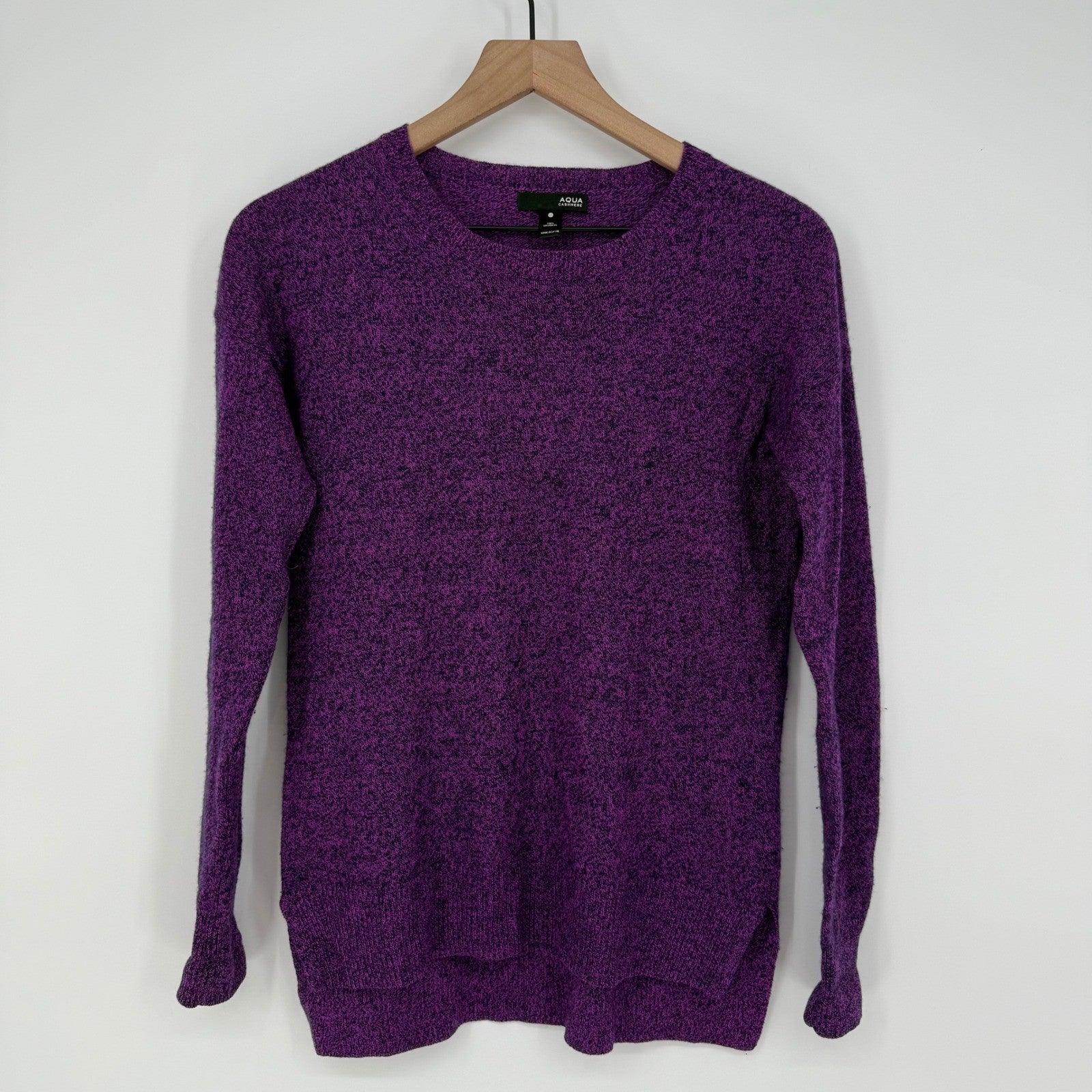 AQUA Cashmere Speckled Purple Crew Neck Sweater Extra Small XS 100% Cashmere