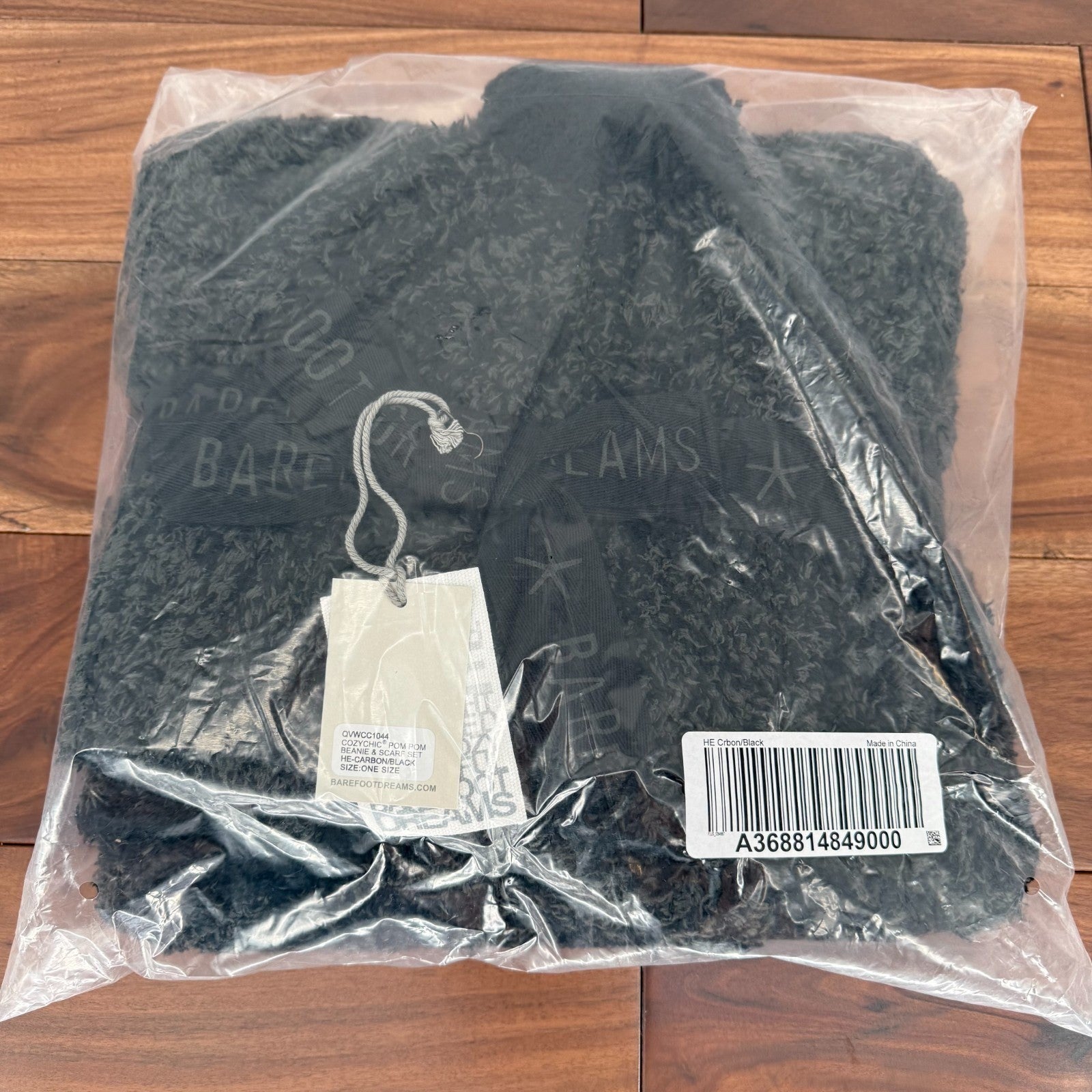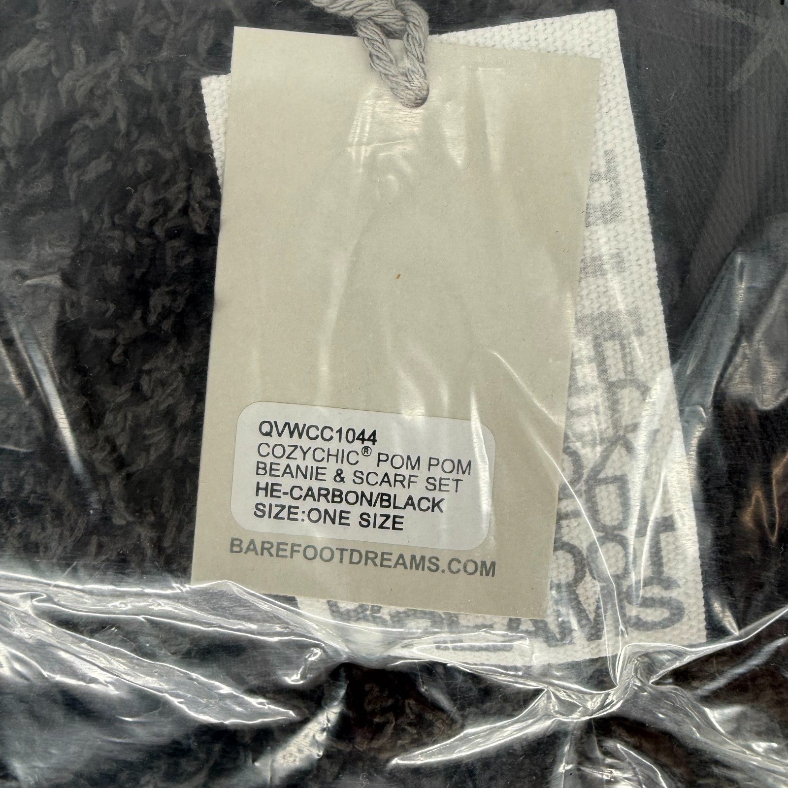 Barefoot Dreams CozyChic Pom Pom Beanie & Scarf Set Womens Carbon Black Warmer