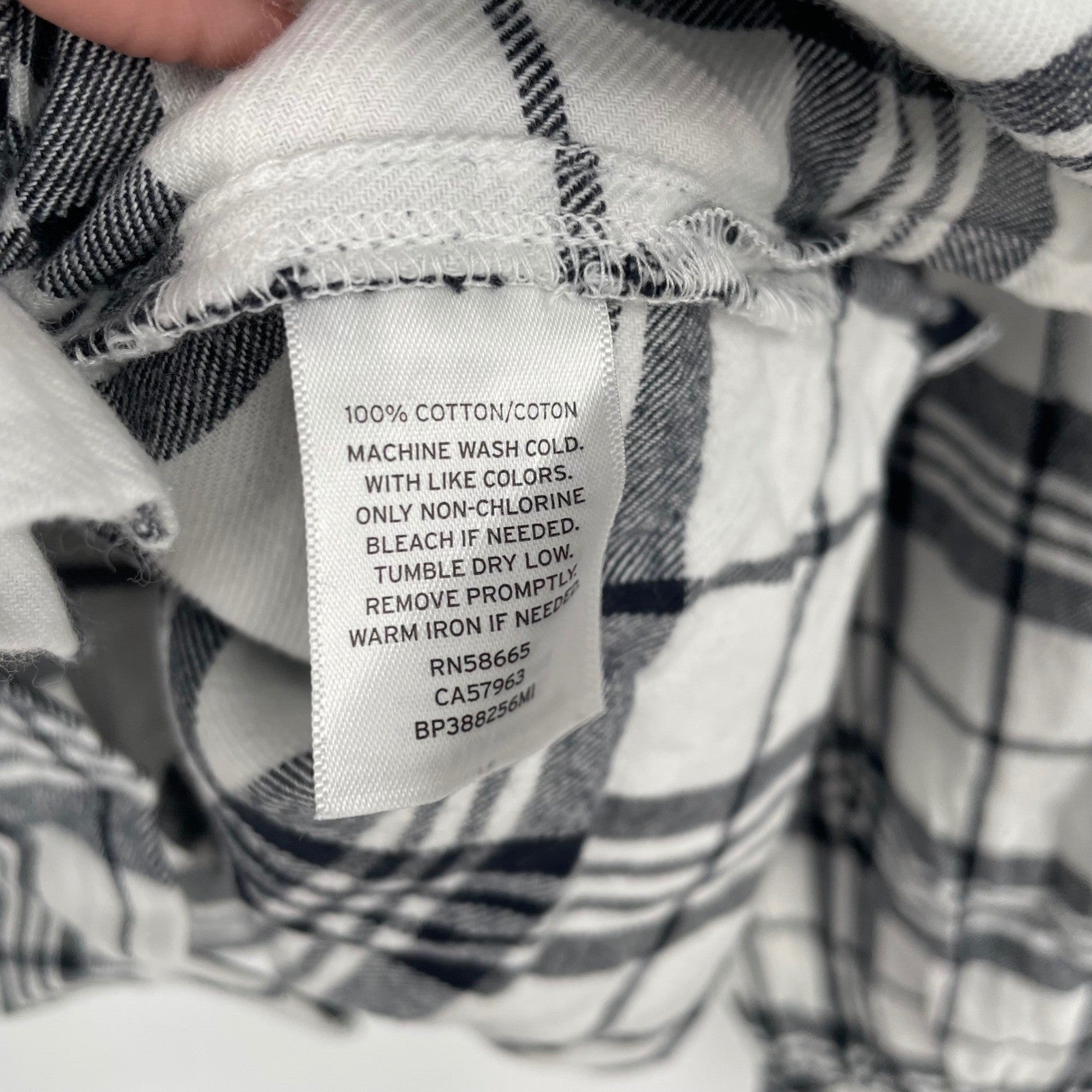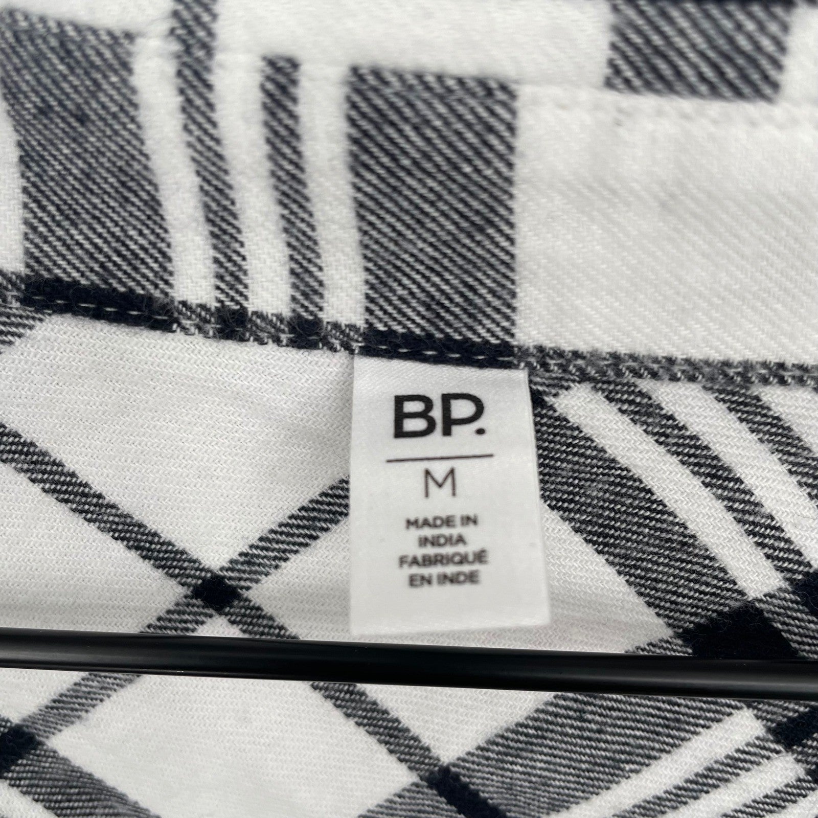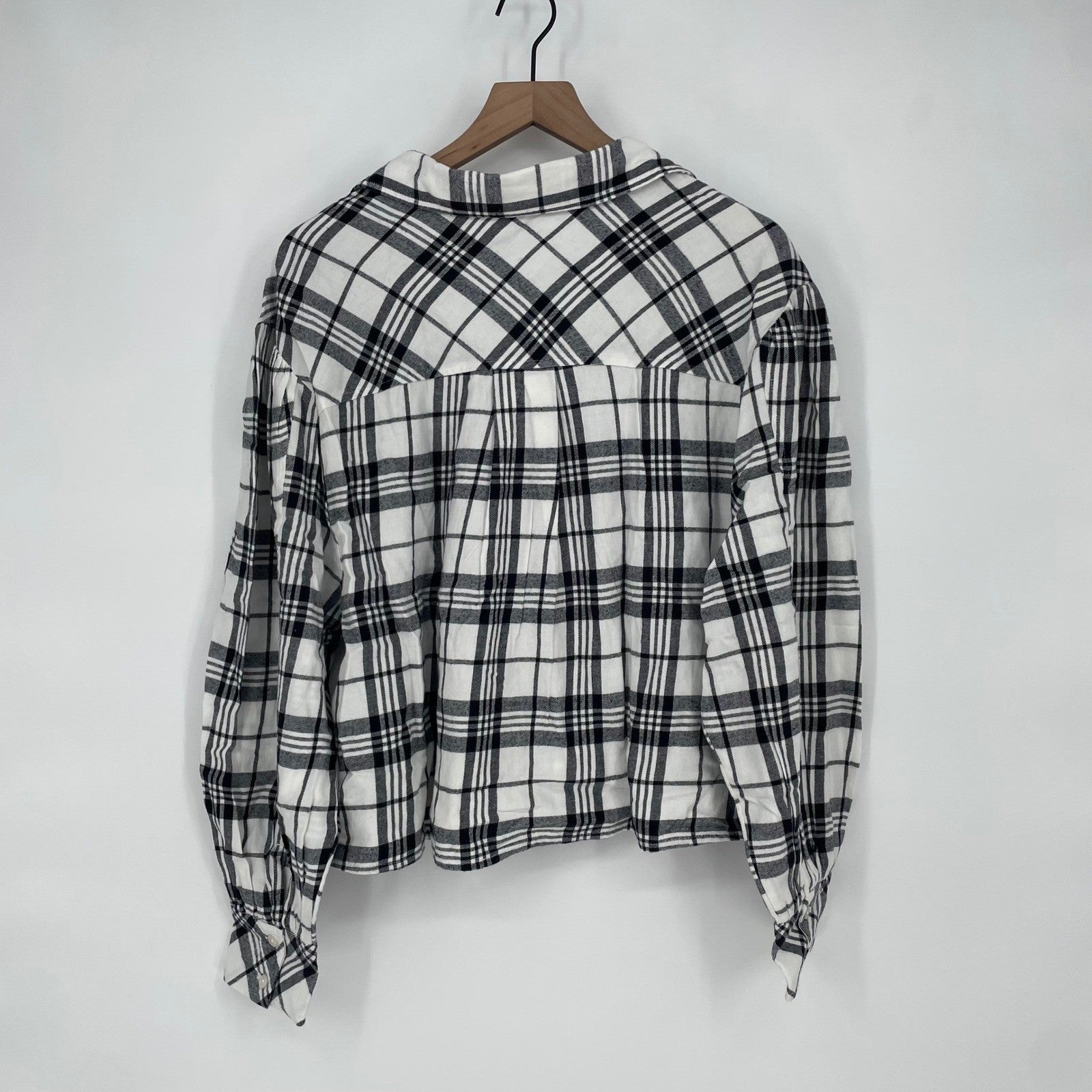 BP Plaid Button Down Shirt Black White Long Sleeve Cropped Casual Size M