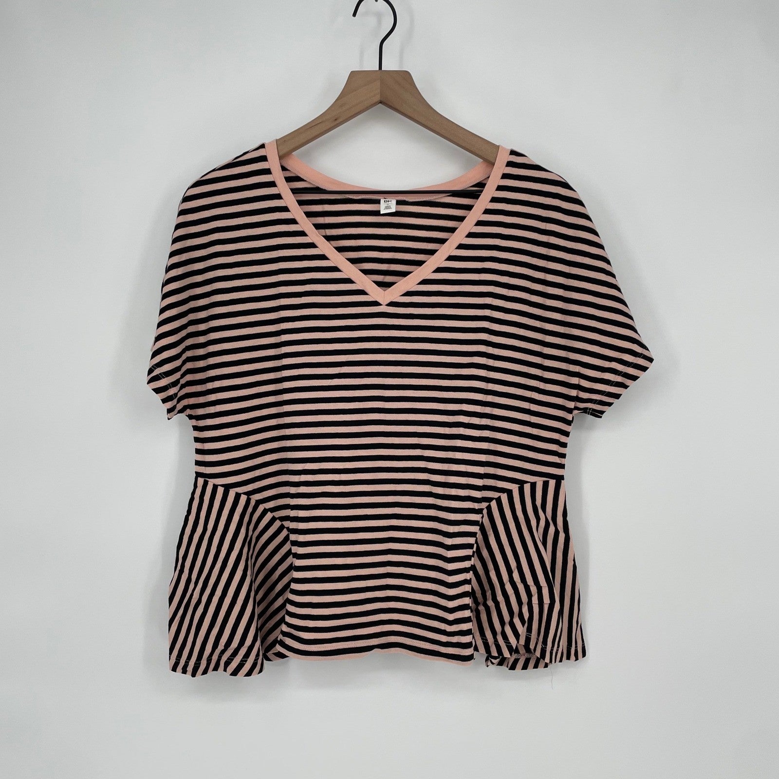 BP. Striped Peplum V Neck T Shirt Top Pink Black Womens Size S