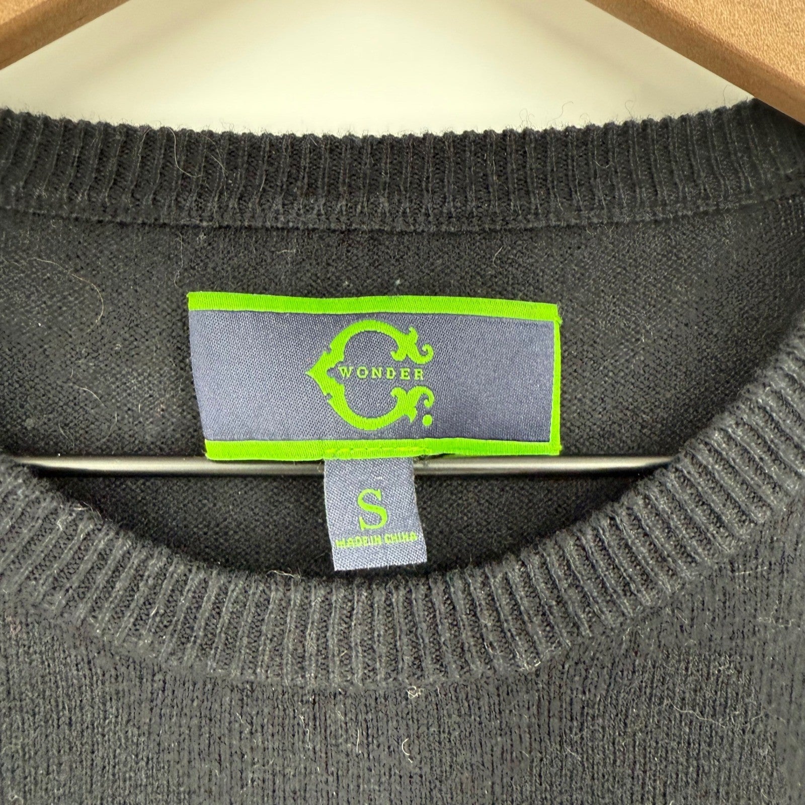 C Wonder Black Knit Sweater Cream Bow Applique Crew Neck Long Sleeve Size S