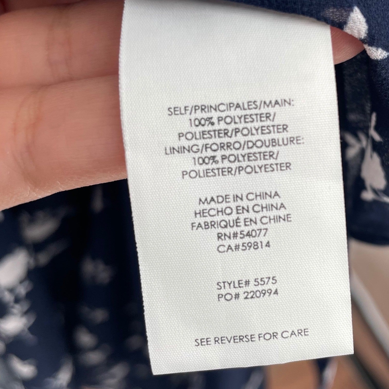 Cabi Navy Floral Print Midi Dress Size 6 V Neck Sheer Sleeve