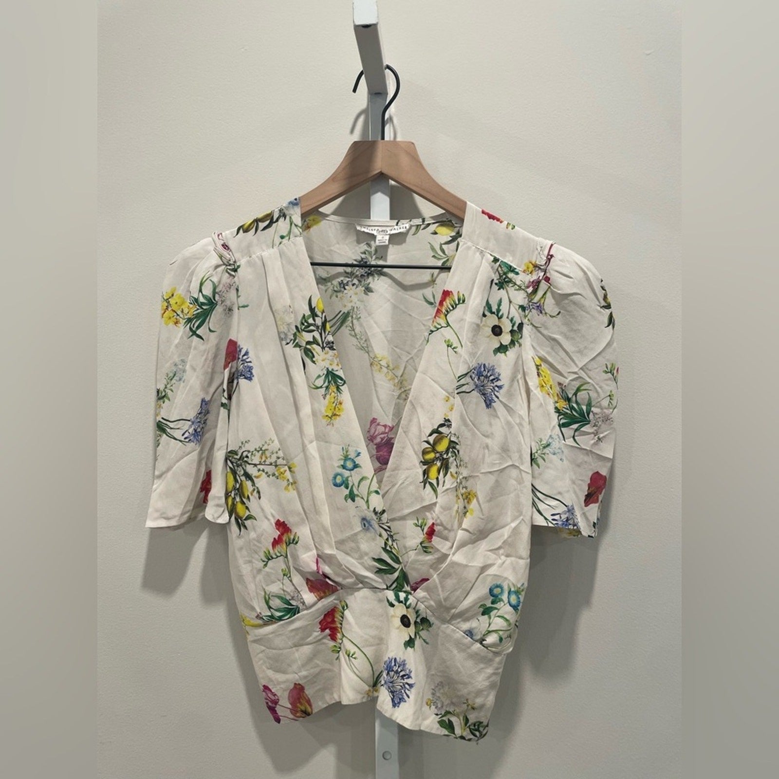Chelsea and Walker White Floral Long Sleeve Top Size 2