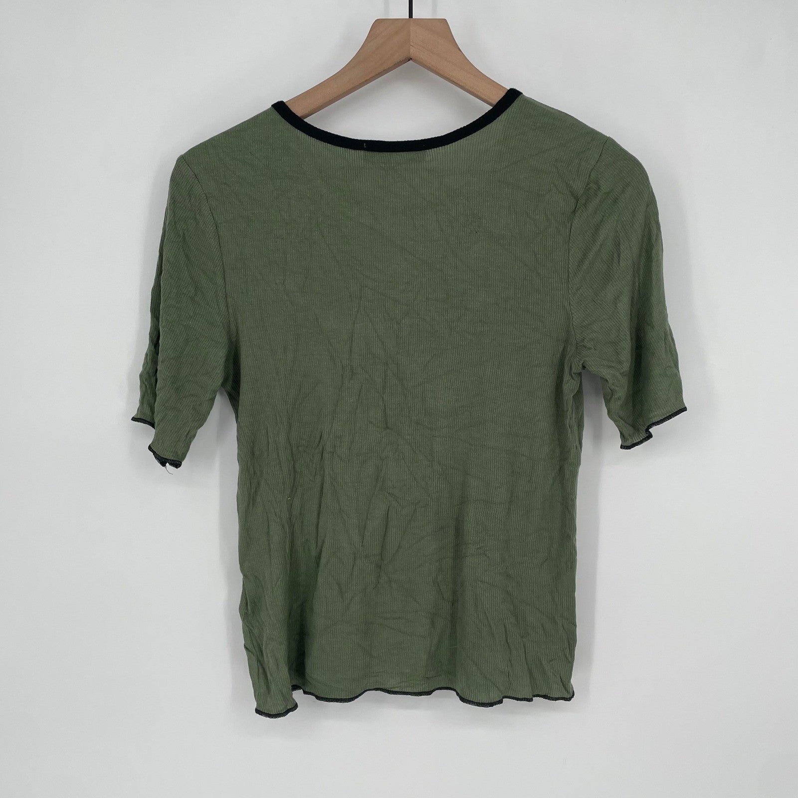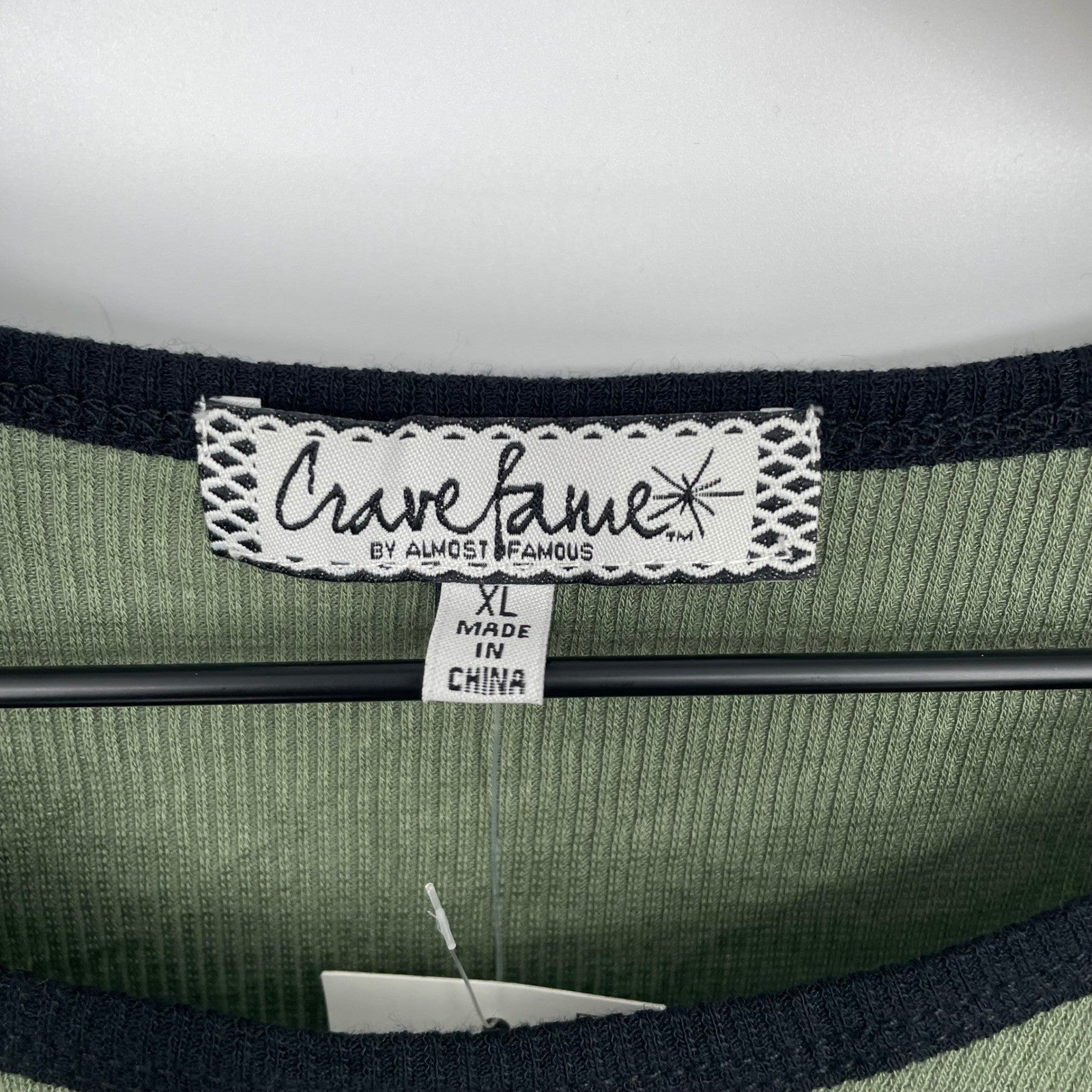Crave Fame by Almost Famous Olive Green Ribbed Knit Short Sleeve Top XL