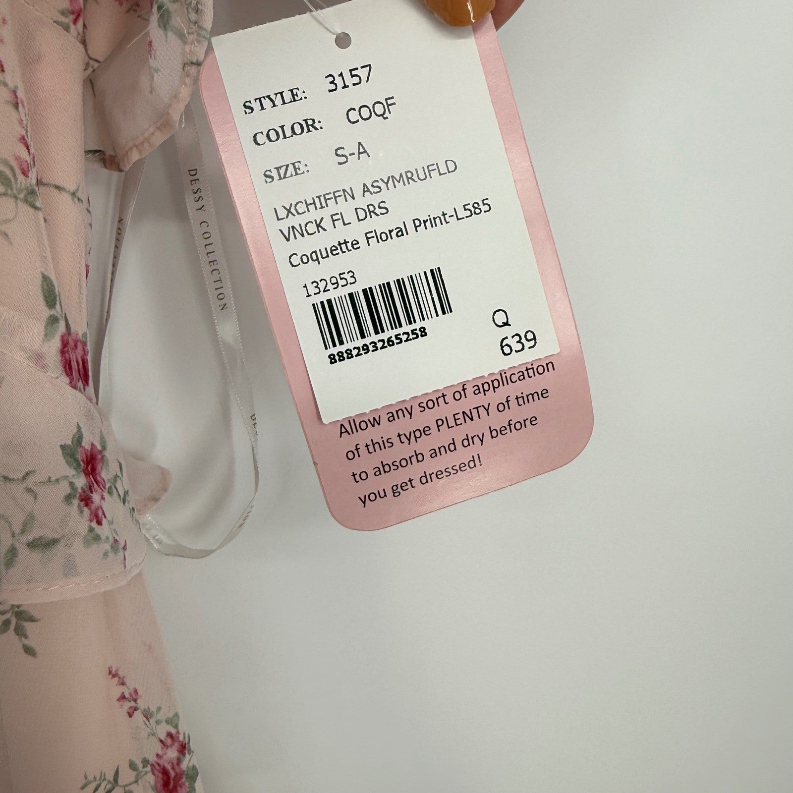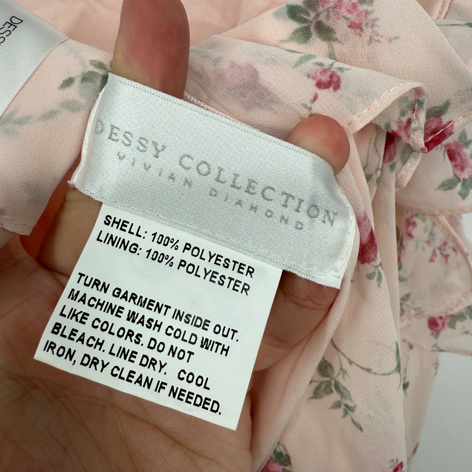 Keywords: Dessy Collection dress, coquette floral print, tiered ruffle dress, spaghetti strap maxi, pink floral dress, garden party dress, wedding guest dress, summer maxi dress, romantic dress, formal dress, evening gown, cocktail dress, long floral dress