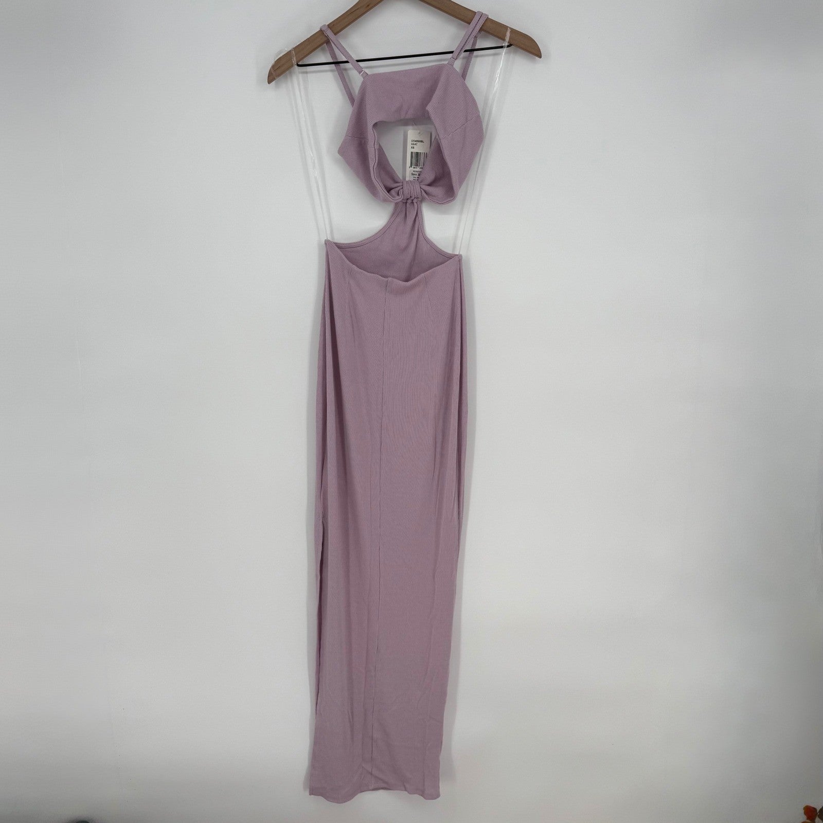 FORE Lilac Cutout Midi Dress, Ribbed Bodycon Dress, Sleeveless XS