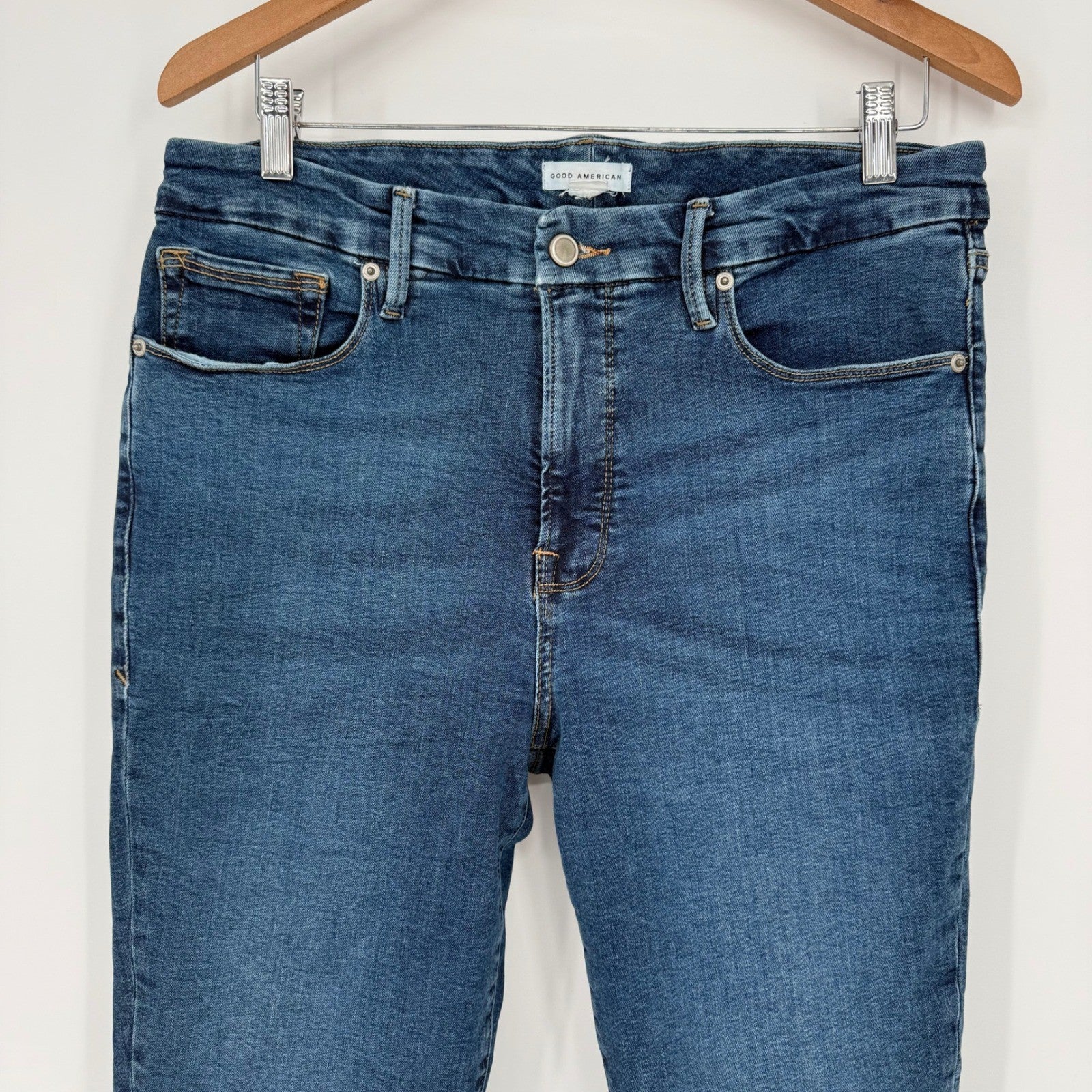Keywords: Good American Jeans, Skinny Denim, Blue Jeans, High Rise, Stretch Denim, Comfortable Fit, Casual Wear, Everyday Denim, Designer Jeans, Classic Style, Wardrobe Staple, Modern Fit, Slim Leg