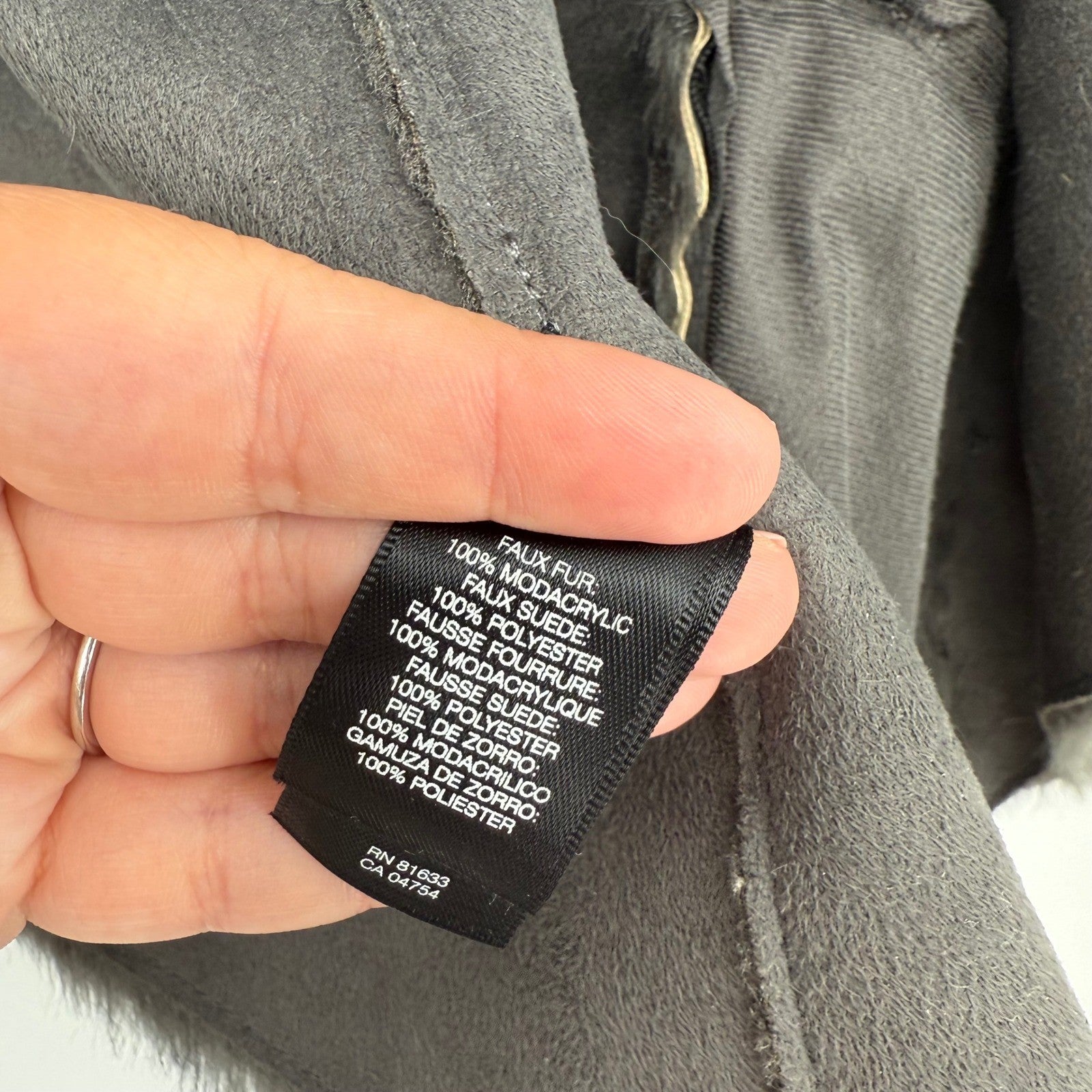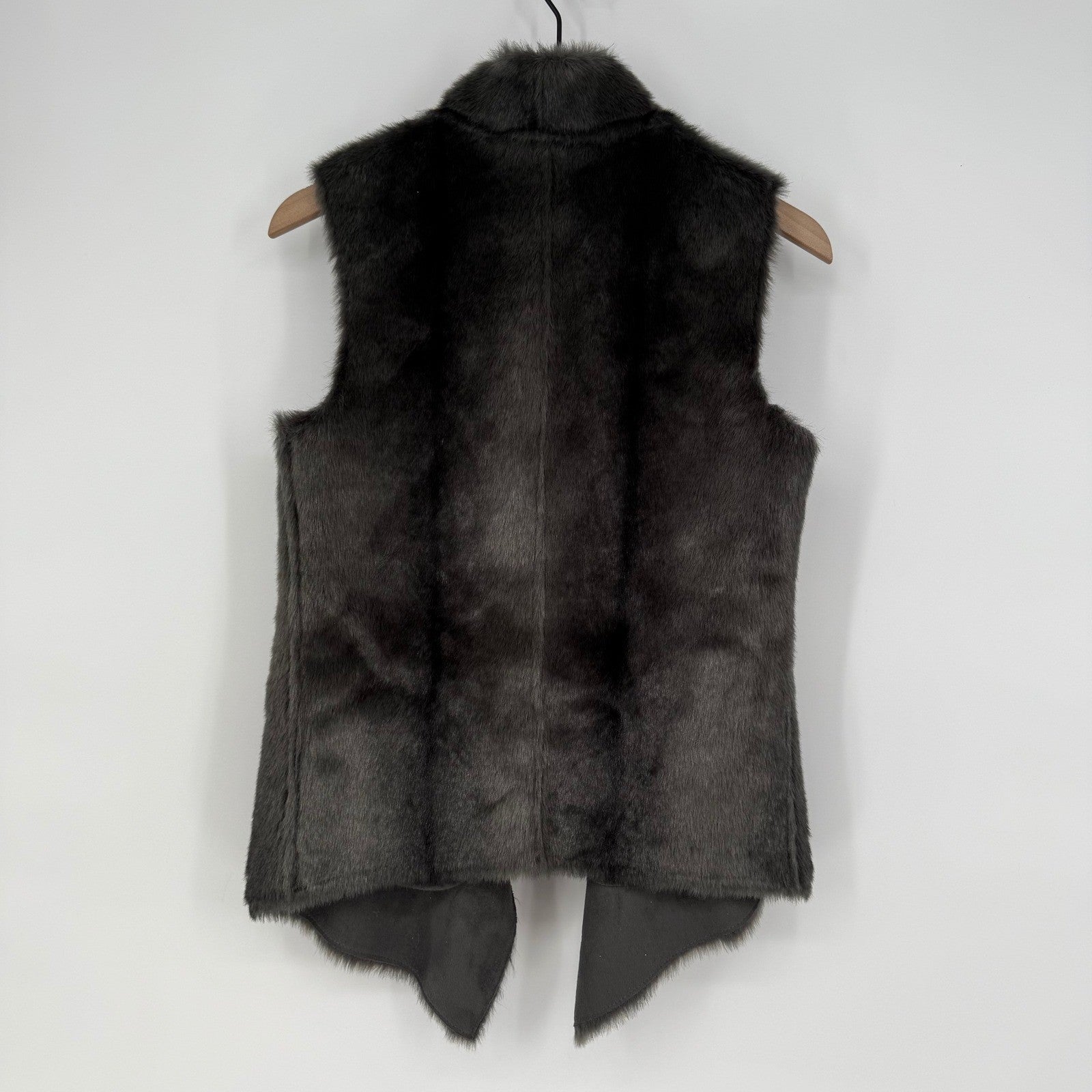 Keywords: Kenneth Cole, Remy Vest, Faux Fur, Suede, Drape Front, Zip Pockets, Grey Vest, Womens Vest, Outerwear, Layering Piece, Fashion Vest, Chic, Sophisticated